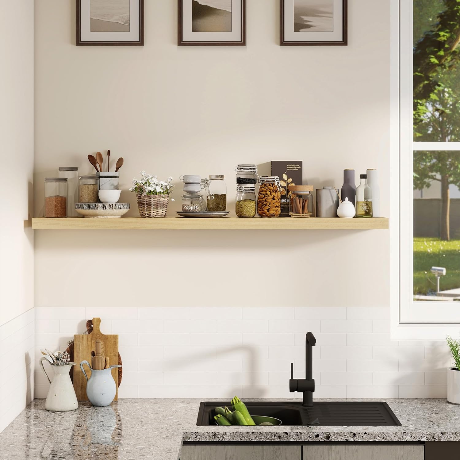- ăDECORATIVE & FUNCTIONALăThe wall-mounted floating shelves are designed for decoration and storage, utilizing and decorating any space in your home. Used as shelf decor to show your collection, books, or prize, the hanging shelves are perfect for displaying your photo frame, small plants, model, or audio in your living room, office, study. And can also use as over the toilet storage shelf in the bathroom to hold toiletries or used as kitchen shelf to storage condiments.