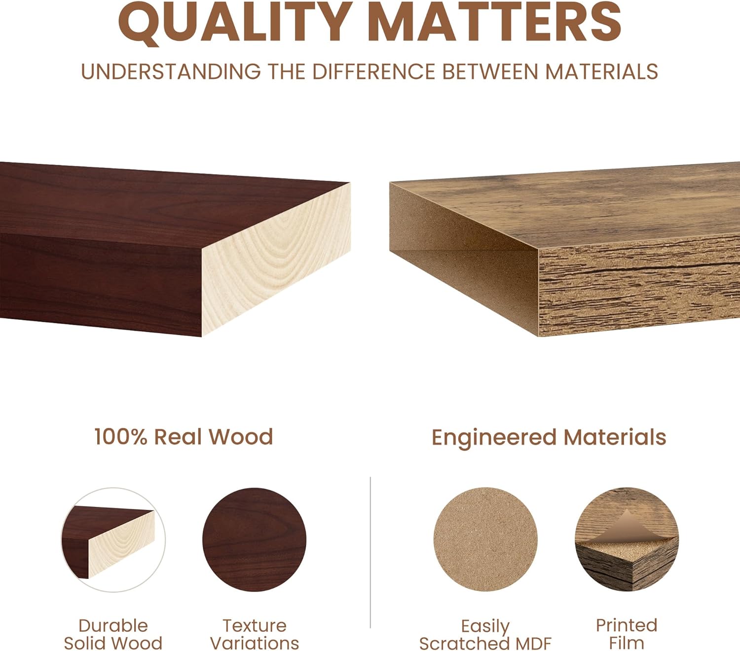 Fun Memories Rustic Floating Shelves for Home Decor, 8 Inch Deep Floating Shelf, Solid Wood Floating Wall Shelves 30 Inch Long, Deep Wall Shelves for Bathroom, Living Room, Walnut Finsh, Set of 2