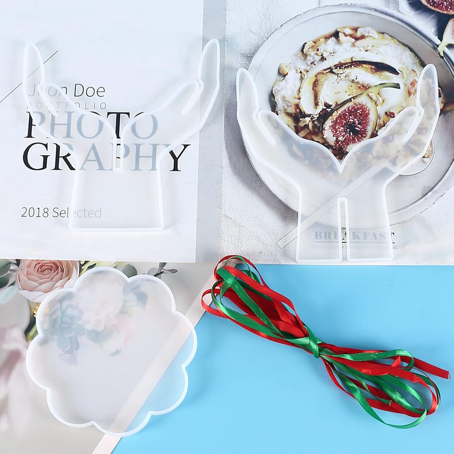 3Pcs DIY Silicone Flower Pot Shelf Mold Easy Demoulding Unique Shape Suitable for Resin Crafts (Double-Hand Flat pad Mold 60-742)