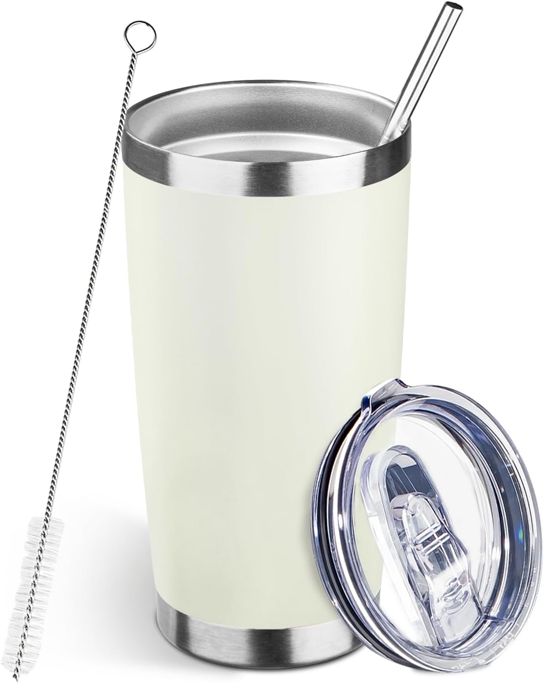 20oz Tumbler Bulk with Lid and Straw, Stainless Steel Double Wall Vacuum Insulated Travel Mug, Powder Coated Coffee Cups for Hot and Cold Drinks,Funny Gifts for Women Men(Cream-coloured,1)