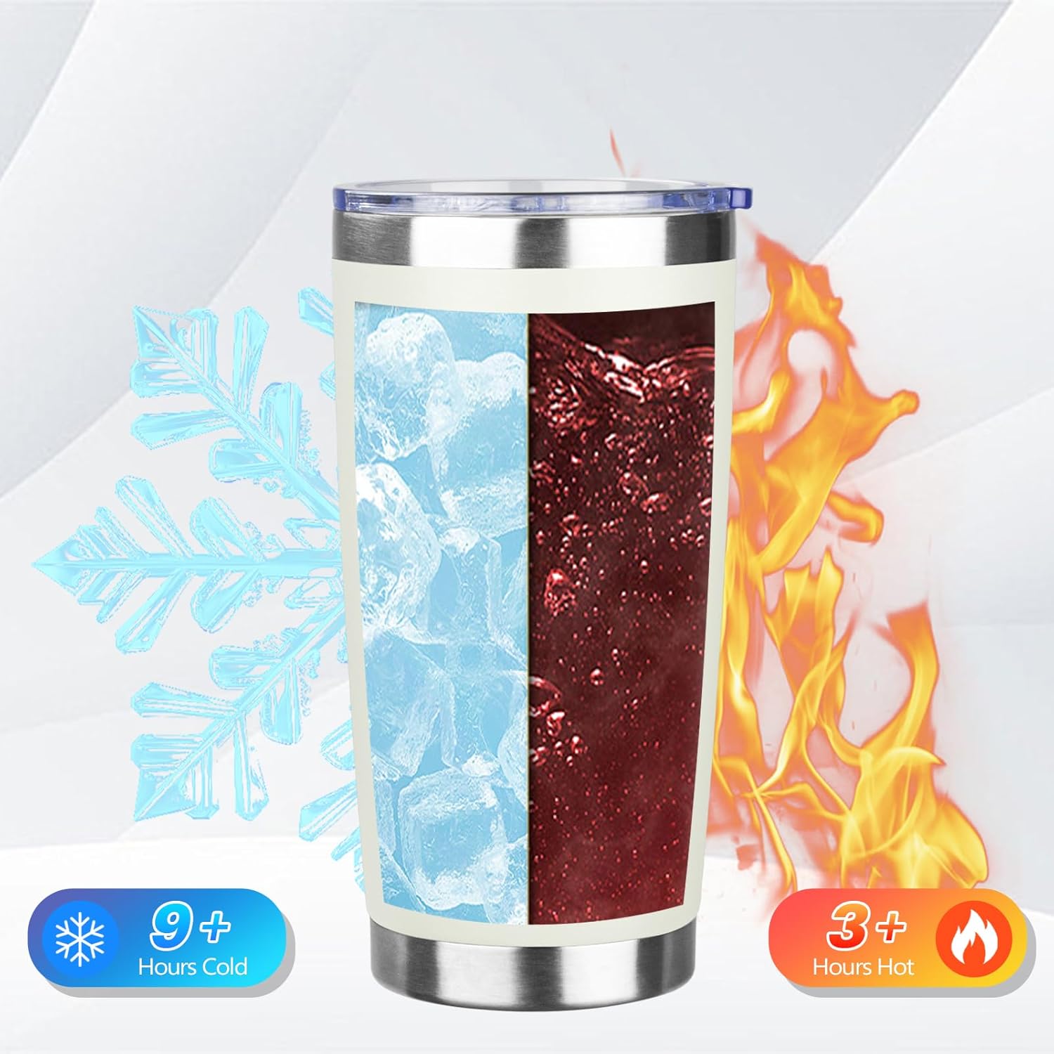 - BPA Free Lid: Stainless steel tumbler set with lid and an opening for drinking, be aware of how hot your coffee is before taking a sip. Under normal temperature, the insulated coffee cup keep your water hot for three hours and cold for nine hours