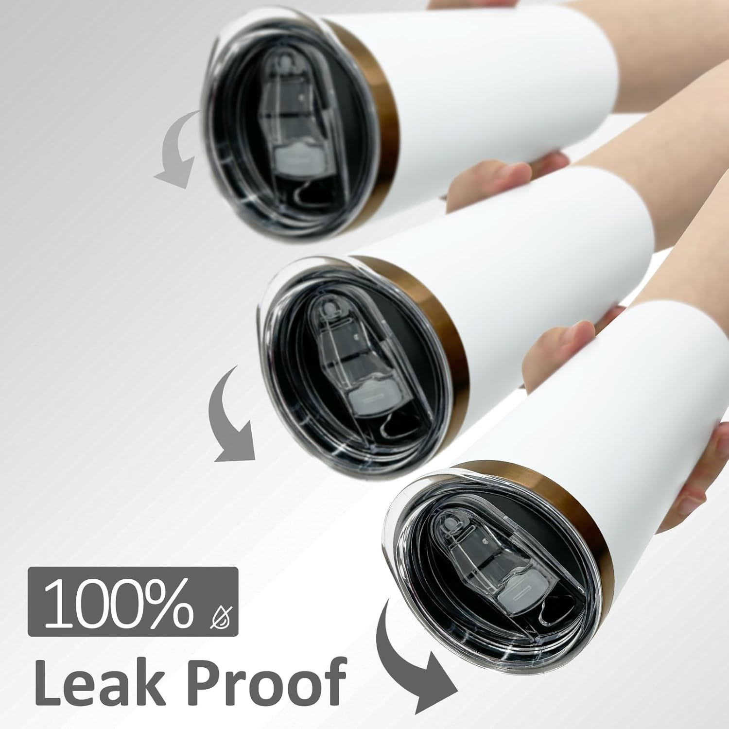 20 oz Skinny Tumblers Bulk, Stainless Steel Insulated Tumbler with Lids and Straws, Slim Double Wall Powder Coated Travel Coffee Mugs, Reusable Cup for Hot and Cold Drinks (White,1 pack)