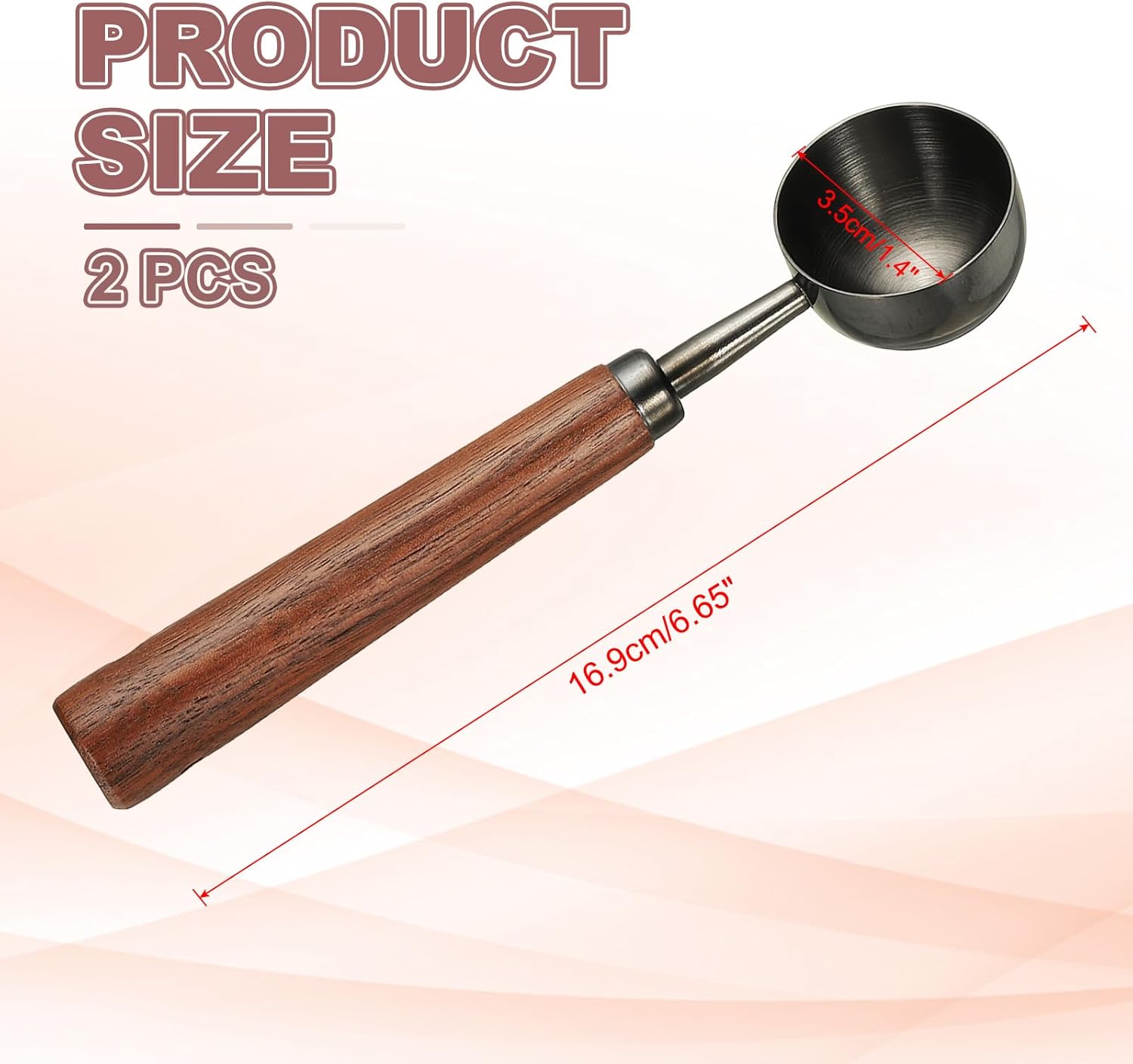 uxcell 2pcs Coffee Measuring Spoon, 4" x 0.8" 15ml Stainless Steel Coffee Scoop with Wood Handle for Ground Coffee or Loose Leaf Tea Black
