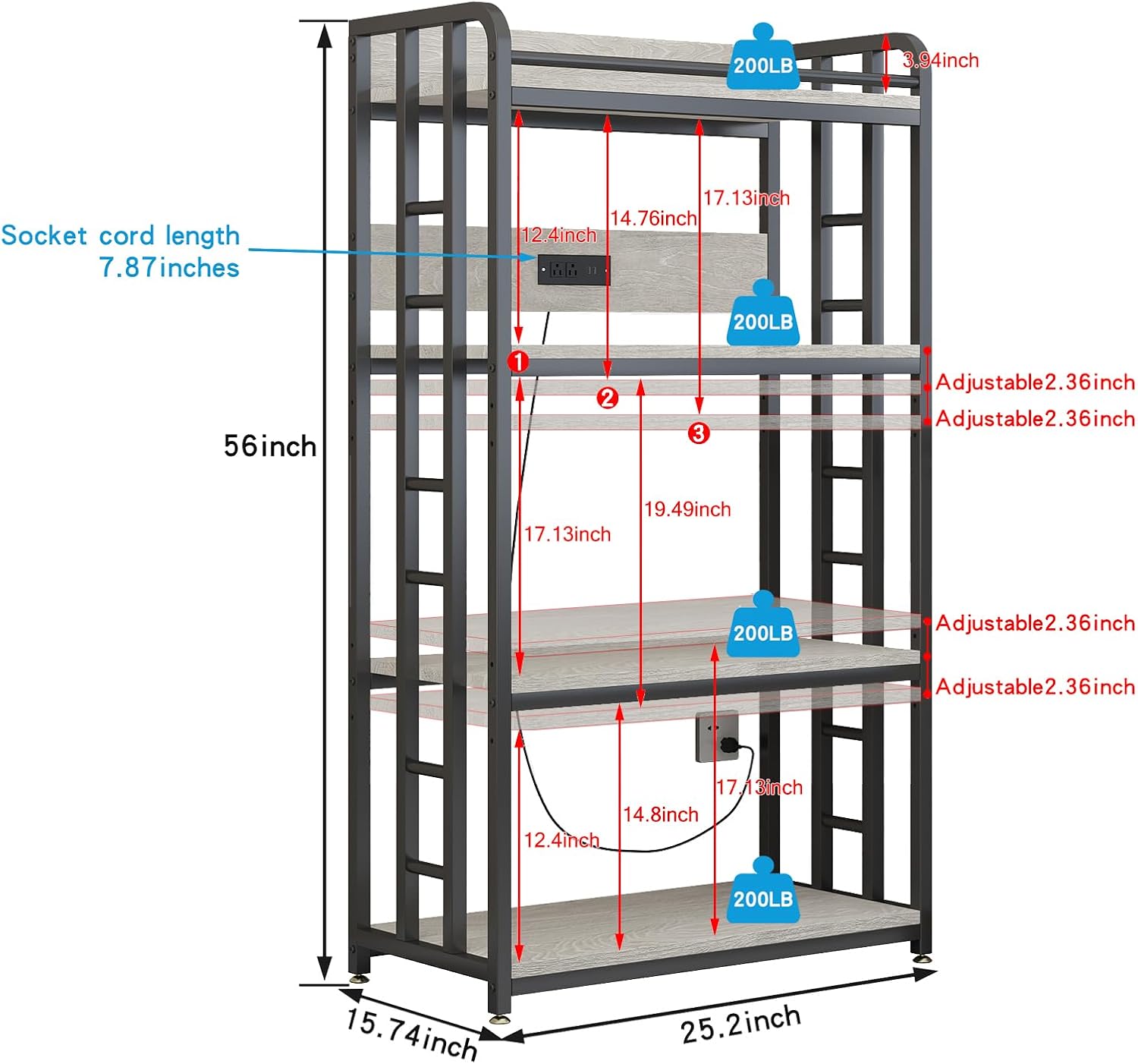 - ăSpace-Saving Bakers Rack with Compact DesignăMeasuring 25.2 inches (L) x 15.74 inches (W) x 56 inches (H), this microwave stand is ideal for small kitchens or tight spaces, offering efficient kitchen storage without compromising on capacity.
