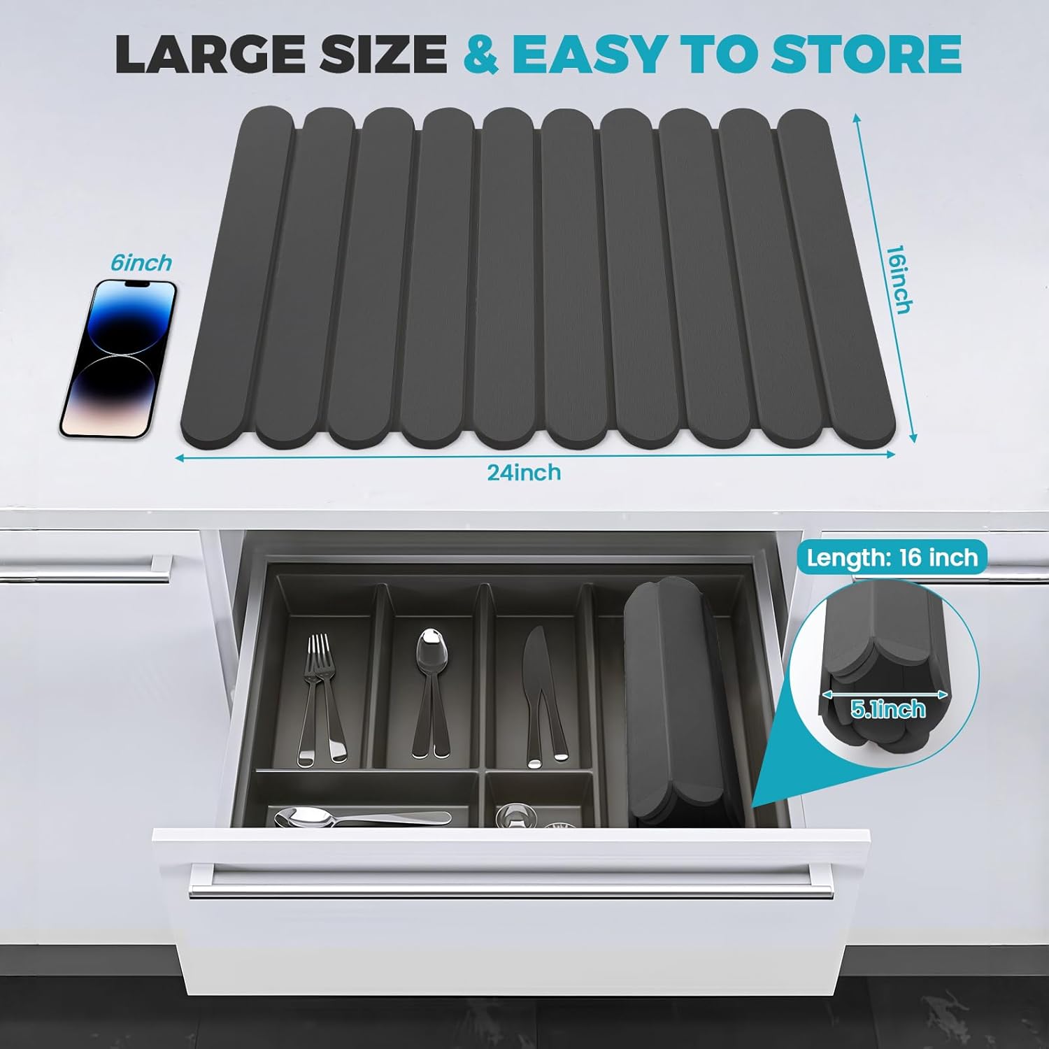 - Collapsible and Space-Saving: Measuring 24"(L)x16"(W) when unfolded, this collapsible stone drying mat offers ample space for your dishes. When not in use, easily store it in drawers or kitchen cabinets, maximizing your kitchen's organization