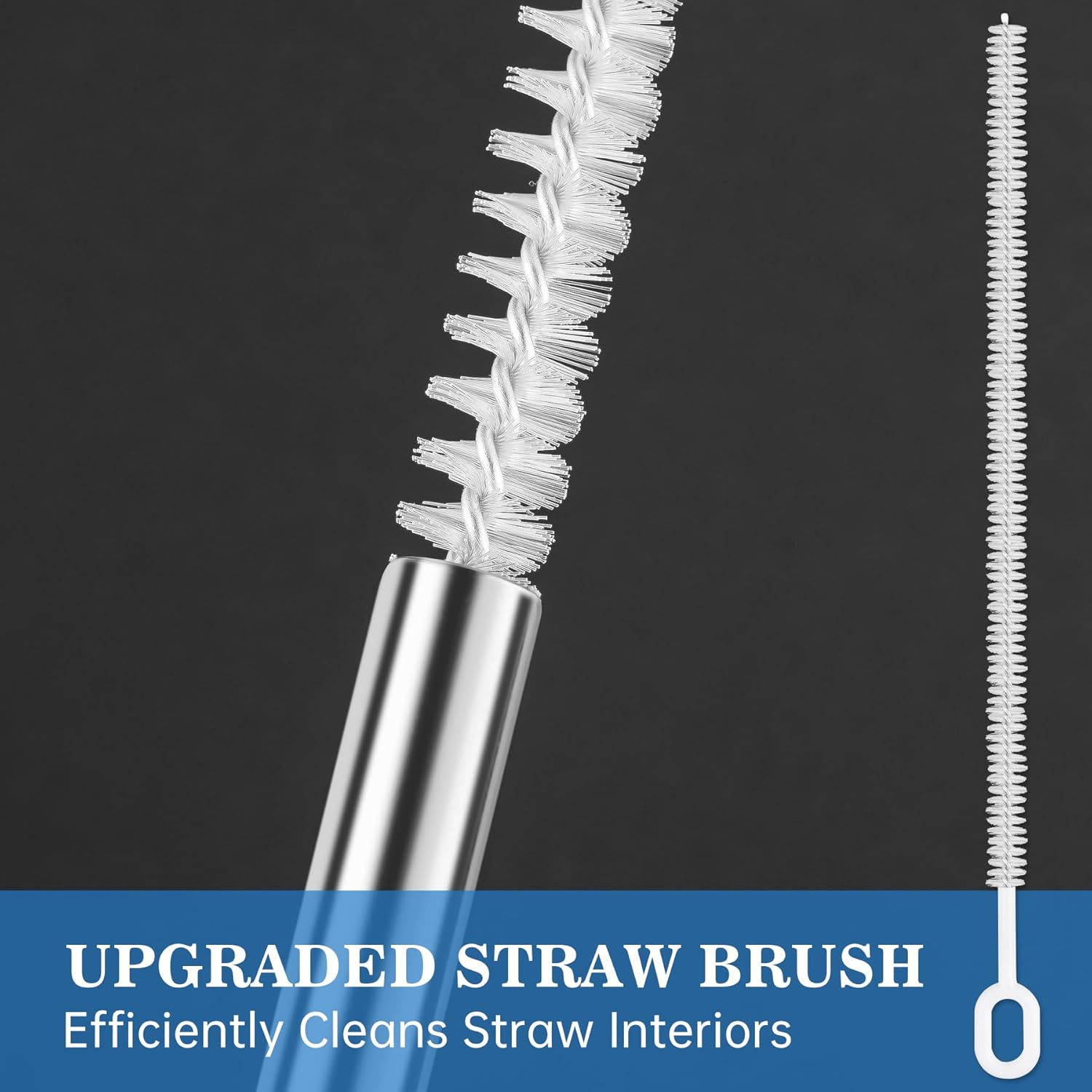 Tomorotec 8PCS 12" Stainless Steel Straws 4 Bent & 4 Straight for 40oz Stanley Tumblers, Reusable Food-Grade Drinking Straws with Cleaning Brush for Smoothies, Milkshakes, Iced Coffee, Dishwasher Safe