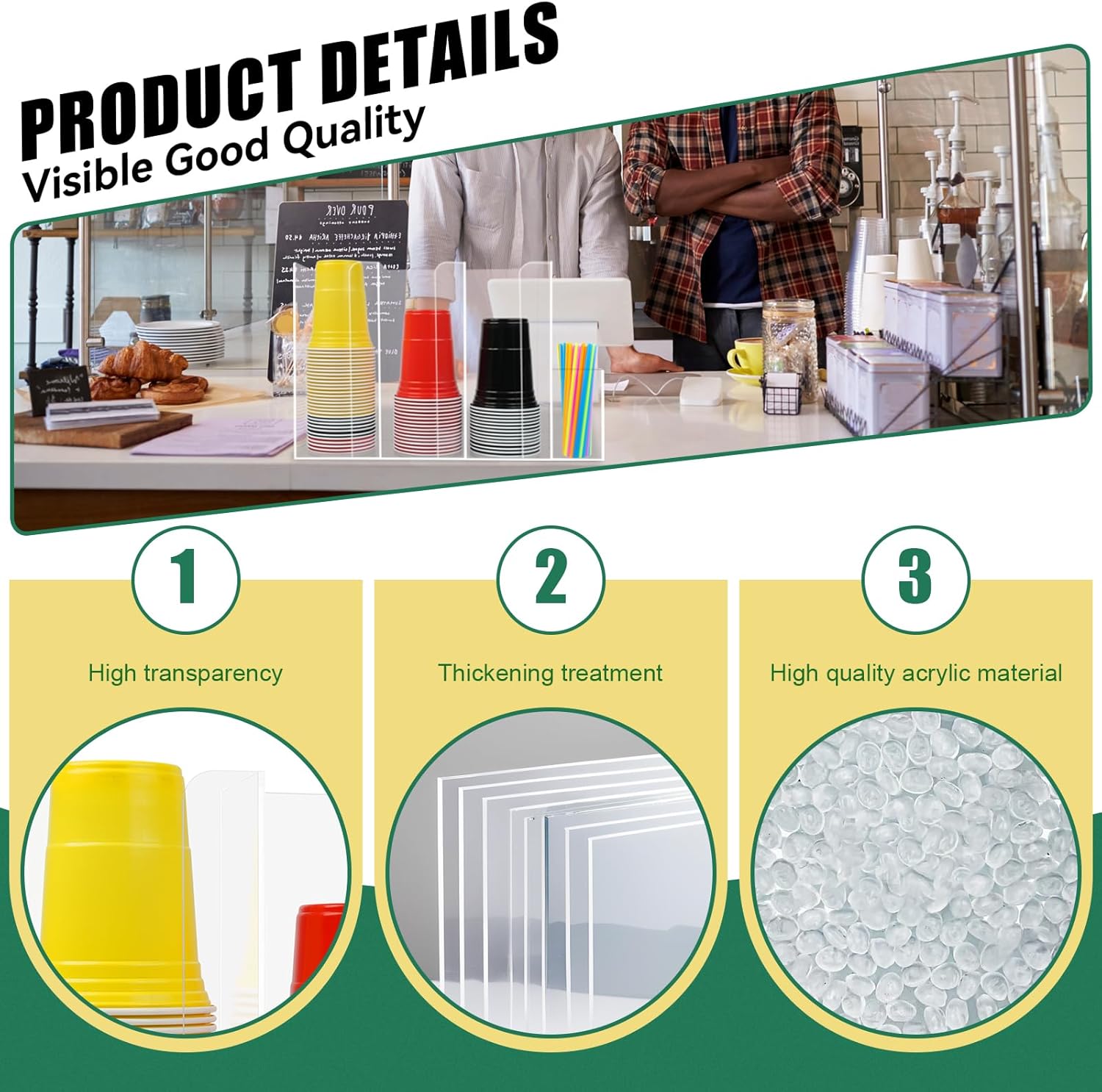 4 Compartments Acrylic Cup and Lid Holder, Clear Disposable Coffee Cup Holder Organizer,Cup Dispenser for Kitchen Bar Shop Party Supplies