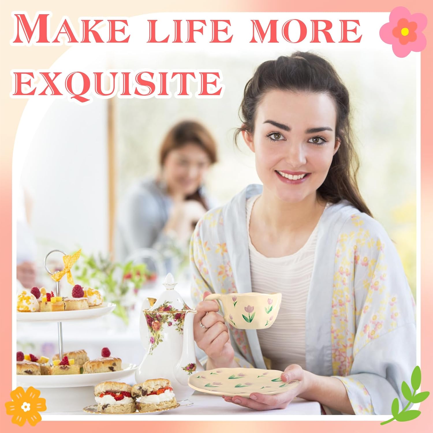- Aesthetic Latte Art Cups: Our 8 oz cappuccino cups with saucers are perfect for latte art enthusiasts. Our irregular, aesthetically designed ceramic cups are ideal for serving espresso, double shots, americanos, lattes, or tea. Their sleek and modern look elevates any coffee or tea experience.