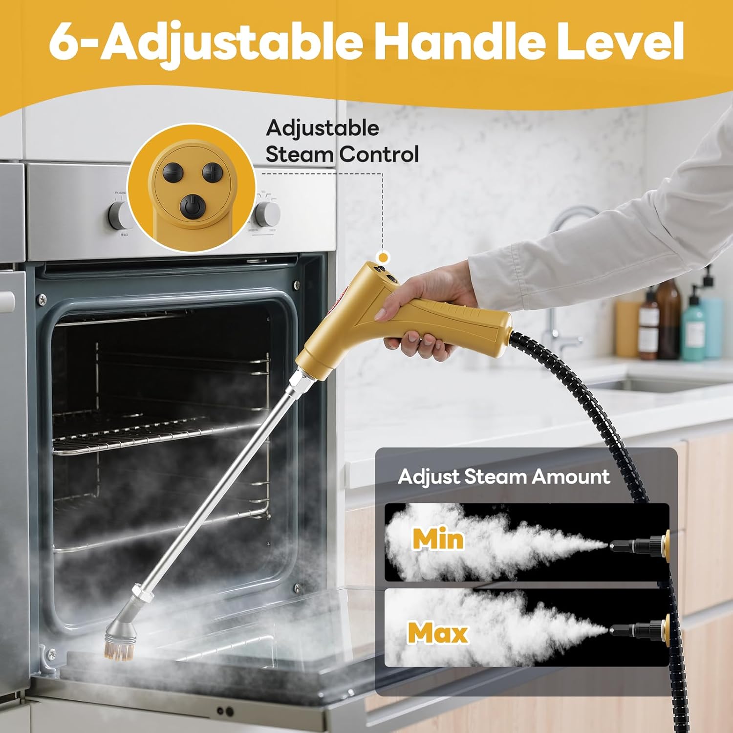 - Easible Whole-house Cleaning Solution: Handheld Steam Cleaner with an ultra-long 118-inch power cord and a 78-inch steam hose, enjoy a wider cleaning range. This enables you to easily access and clean the most inaccessible areas.
