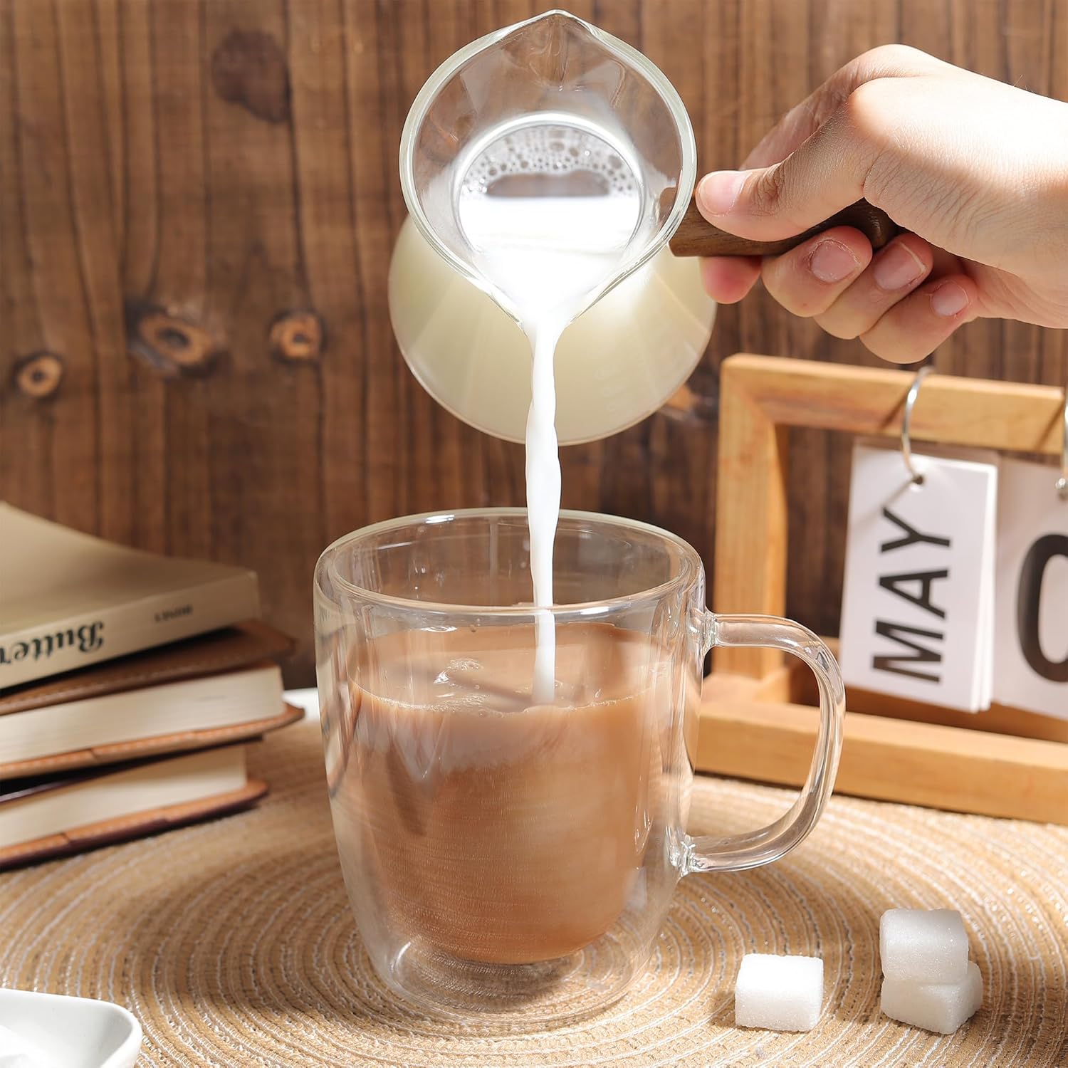 - Secure Wooden Handle and Double Scale Design: Our glass measuring cup features a heat-resistant ergonomic wooden handle that provides a secure, comfortable grip—perfect for pouring hot coffee, espresso, or melted butter without burning your hands, it ensures stability and control. The measuring cup has two clear graduations in ounces and milliliters so you know exactly how much you need for each step.