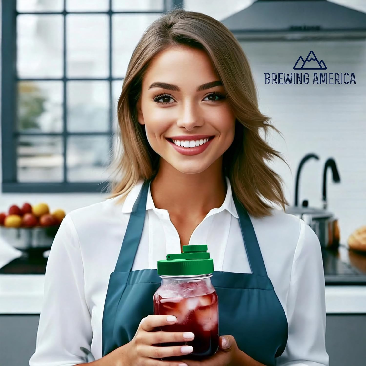 Brewing America Mason Jar Drinking Cup Pint and Half Drinking Lid and Azure 24oz Jar (2, Tractor Green)