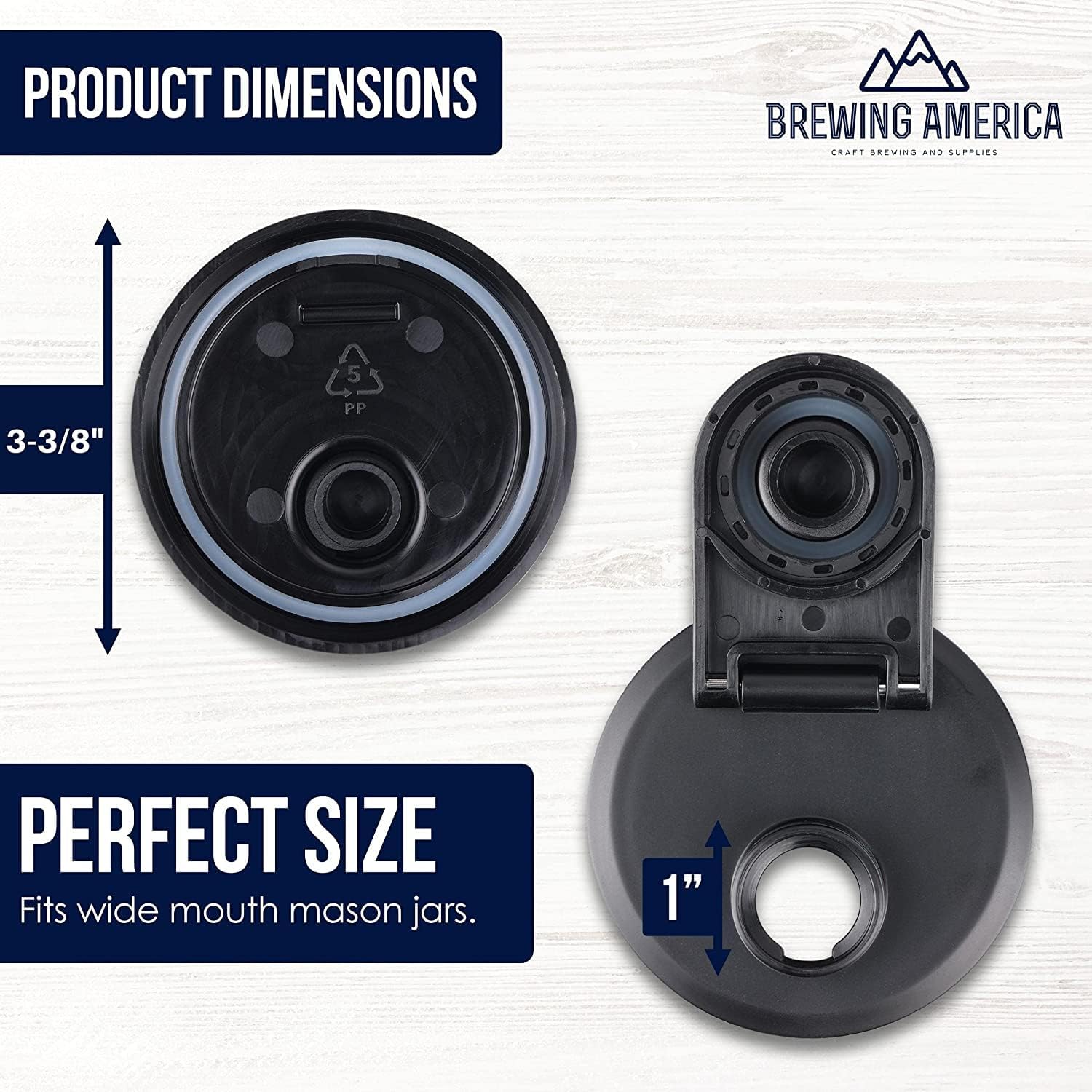 Brewing America Mason Jar Drinking Cup Pint and Half Drinking Lid and Azure 24oz Jar (1, Black)