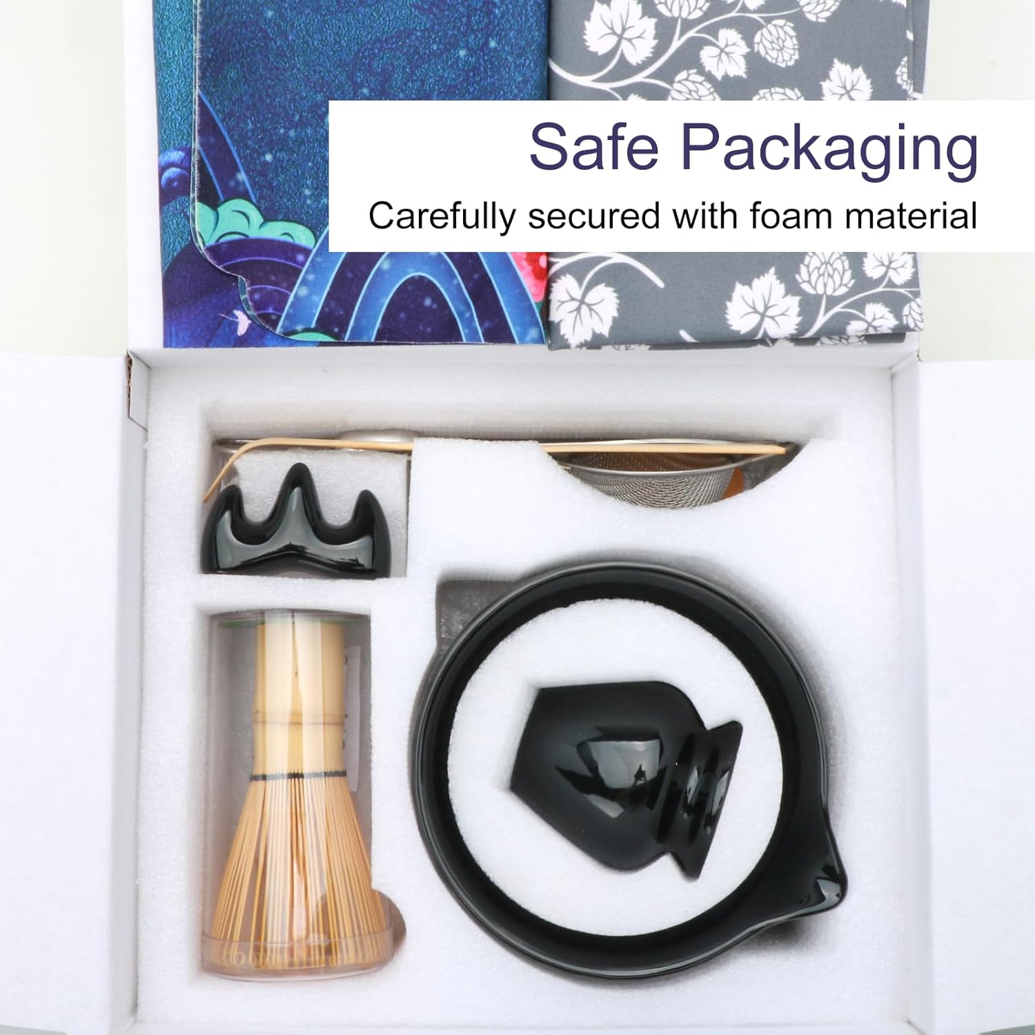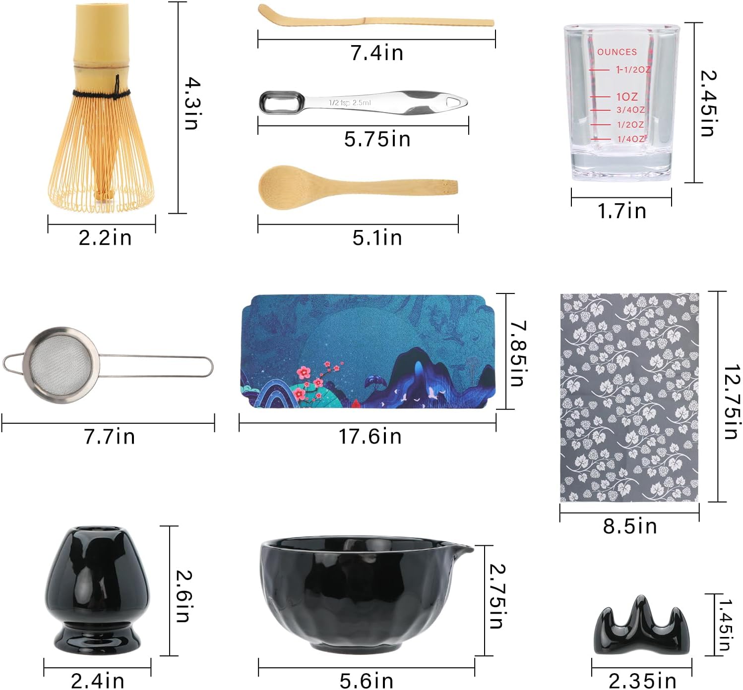 - Exquisite Gift-Ready Presentation:Elevate gifting with this artisanal matcha kit set, featuring black ceramics bowl, a bamboo scoop, stainless steel spoon,measuring cup,whisk holder, and elegant tea mat. A thoughtful present for tea lovers seeking an immersive Japanese tea ceremony experience.