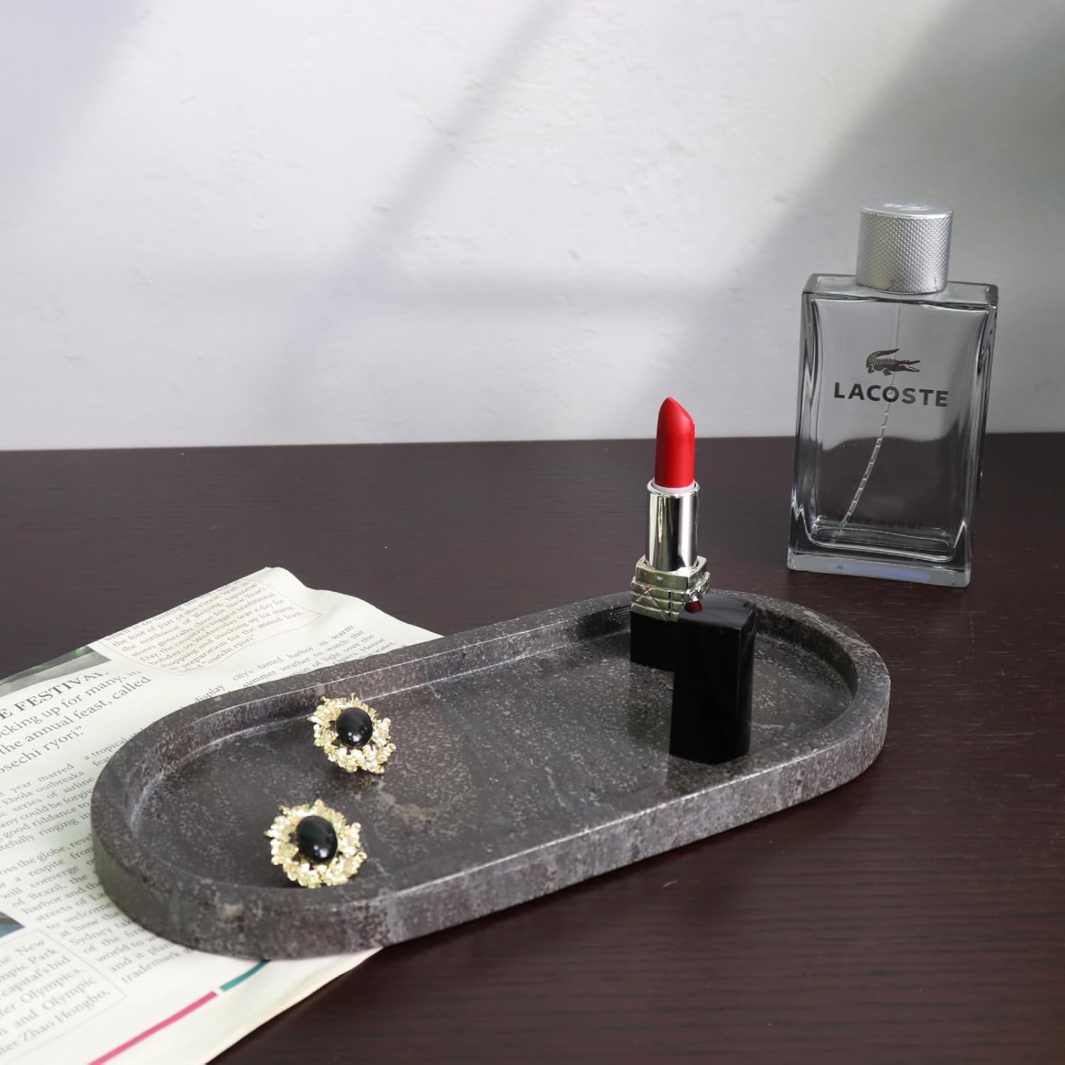Natural Marble Tray, Oval Vanity Decorative Tray for Bathroom Counter, Countertop Stone Organizer, Catchall Tray for Kitchen, Perfume, Candles, Jewelry Dish Decorative Tray