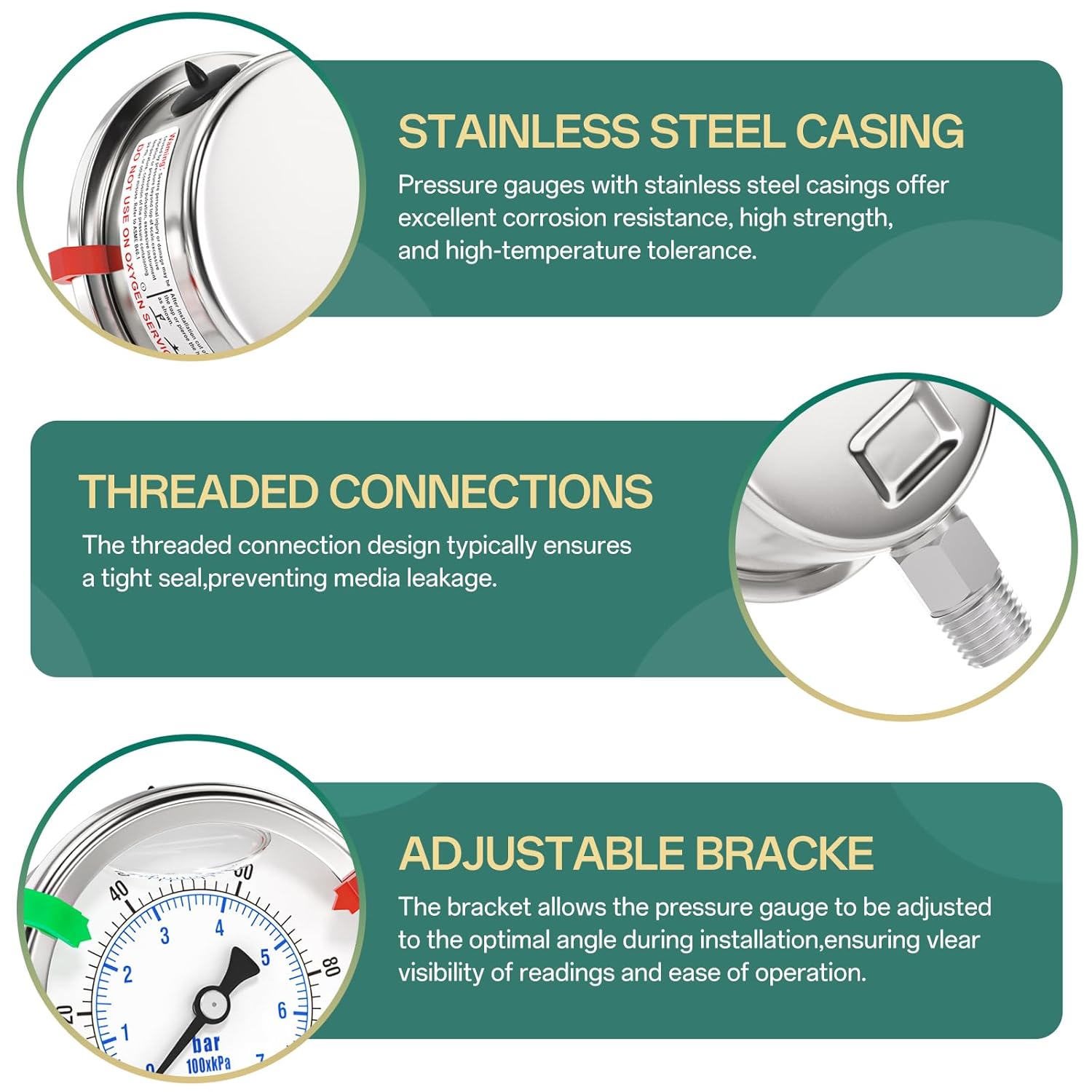 - [SIZE] 2.5" dial size, 1/4" NPT lower mount