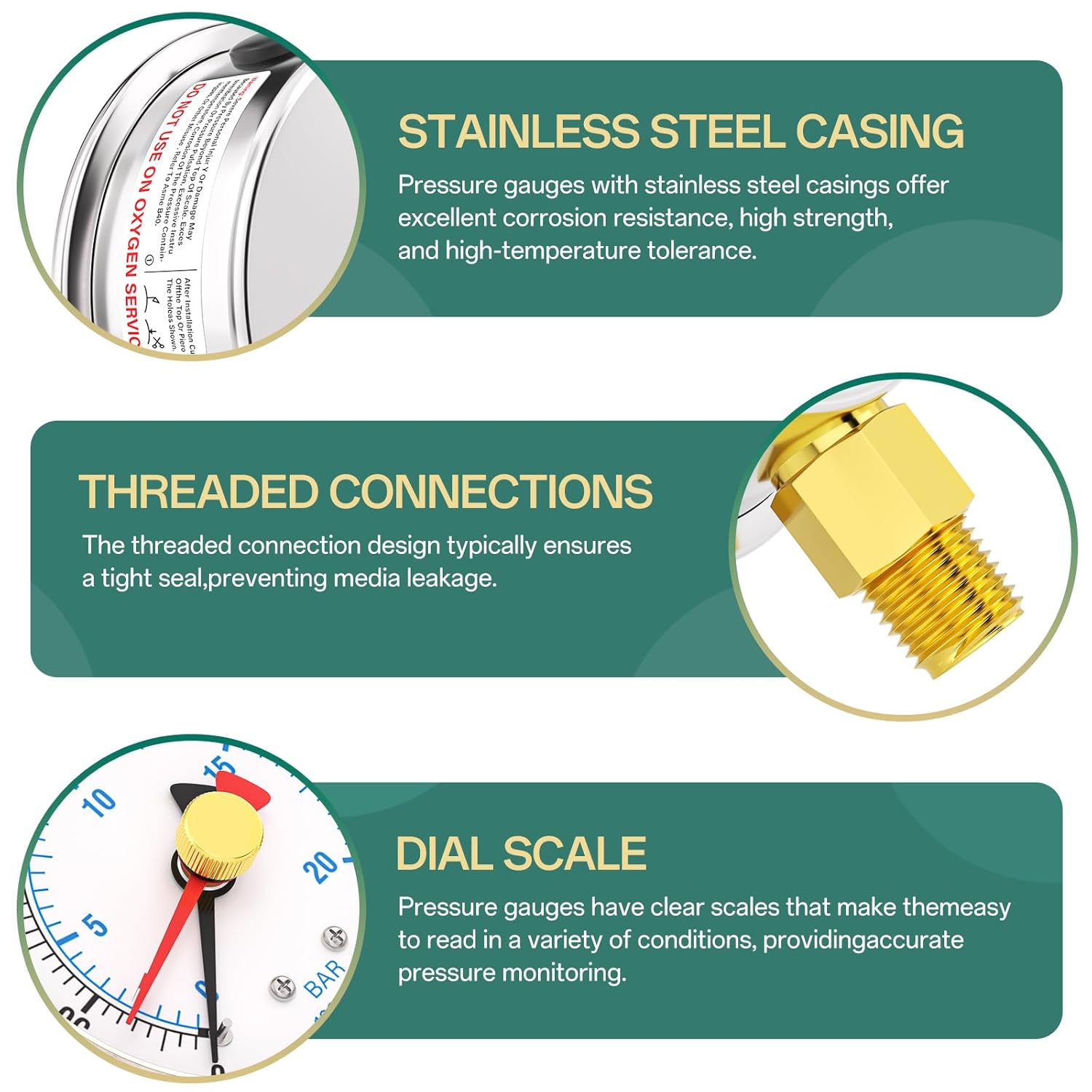 - [SIZE] 2.5" dial size, 1/4" NPT lower mount