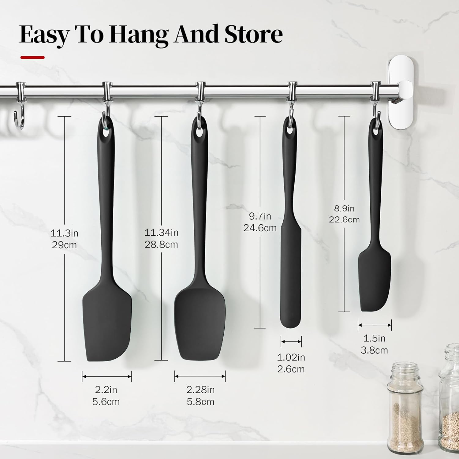 - [Seamless Design & Dishwasher Safe & Easy Storage] This baking spatula set's smooth surface keeps food from sticking, so messy ingredients like caramel or melted cheese wash off easily. Made as semless construction, there are no hidden spots for food to get stuck. It's tough enough for daily dishwasher use, and the handy loop makes storage simple and keeps your kitchen tidy. Whether you're scraping peanut butter or mixing batter, cleanup takes seconds—just rinse and go.