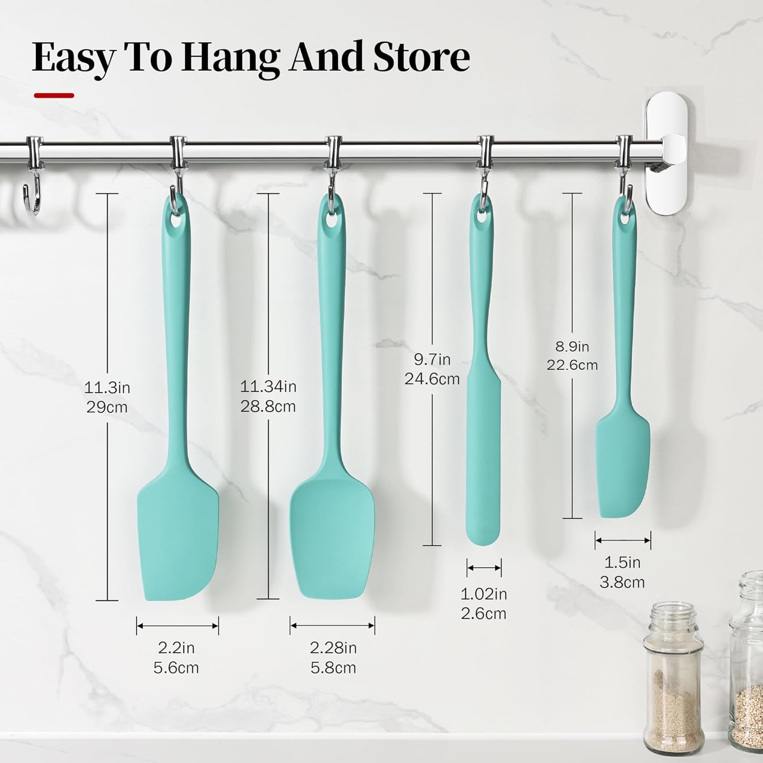 600ºF Heat Resistant Spatulas, High Heat Food Safe Semless Kitchen Silicone Scraper Set for Cooking Baking Mixing Scraping Stirring Nonstick Cookware Pan Bowl (4Pcs,Turquoise)