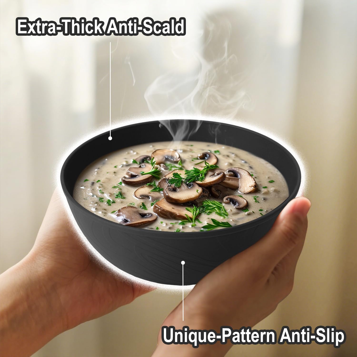 Black Cereal Bowls 40oz for Cereal Lover,Unbreakable Alternative Plastic Bowls Set of 6,Extra Thick Anti-Scald Bowl Sets suitable for Salad,Soup and Fruit.