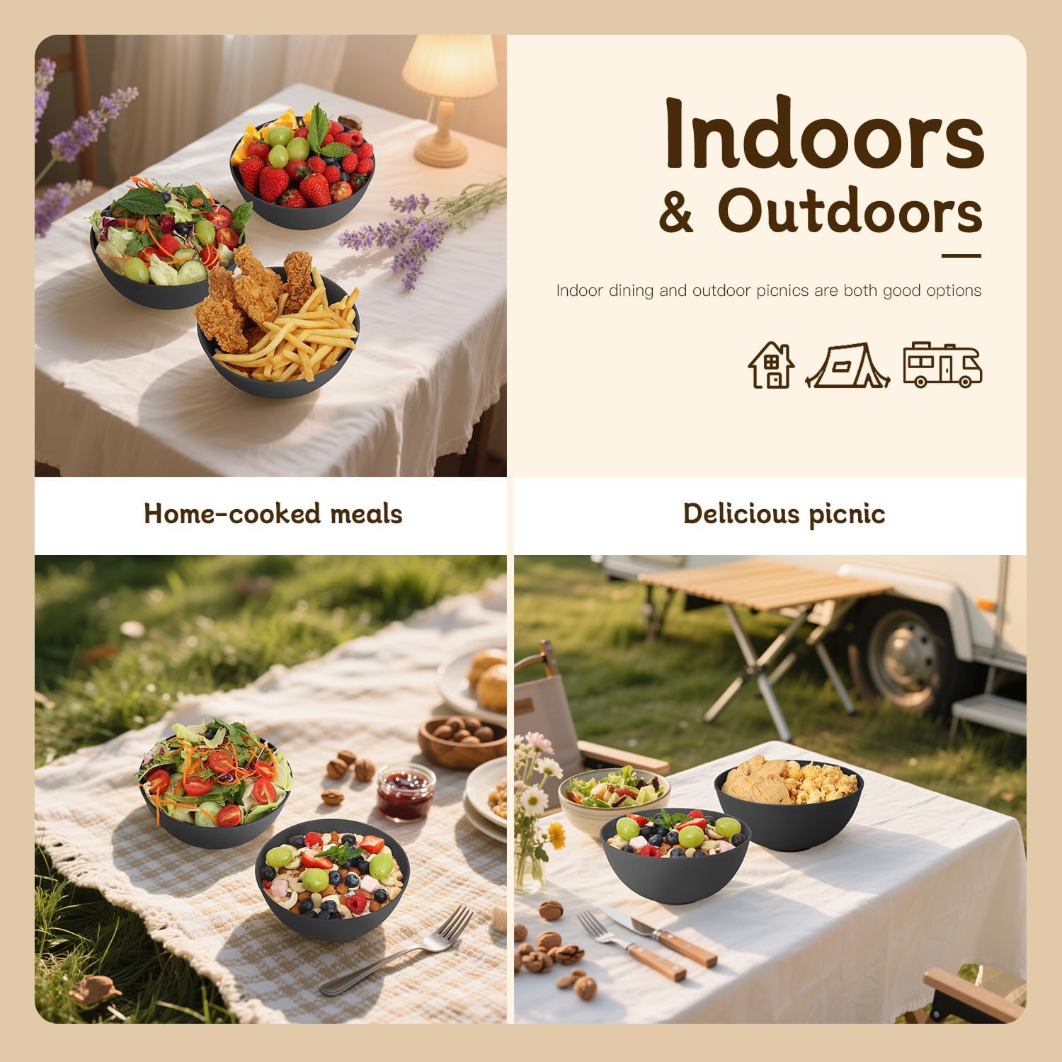 - ใ๐๐ป๐ฑ๐ผ๐ผ๐ฟ๐ & ๐ข๐๐๐ฑ๐ผ๐ผ๐ฟ๐ ๐จ๐๐ถ๐ป๐ดใ- These bowls are lightweight and unbreakable, featuring a smooth surface that makes cleaning effortless. Perfect for camping, RV trips, and outdoor adventures. Their unique flowing water pattern elevates them beyond traditional tableware, transforming everyday meals into aesthetic experiences at home.