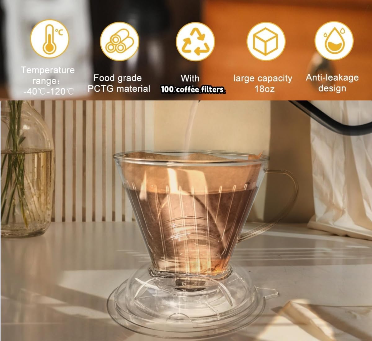 Coffee Dripper with Coffee Filters Drip Coffee Maker Pour Over 100 coffee Filters Large 18 oz BPA Free