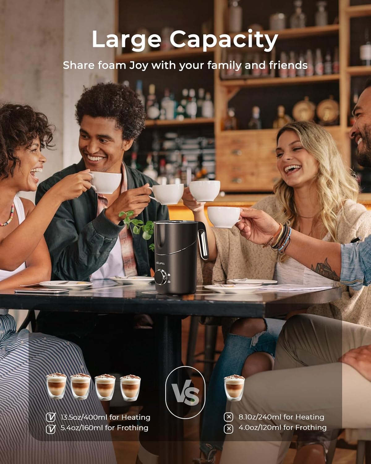 - 【Auto Shut-Off & Reliable Safety Features】Designed for busy kitchens, this milk frother and steamer automatically shuts off after 30 minutes of inactivity or when the cup is removed. The anti-scald handle and stable base make it safe to use as a milk steamer or coffee milk frother, while audio alerts let you know when your foam is ready—no guesswork required.