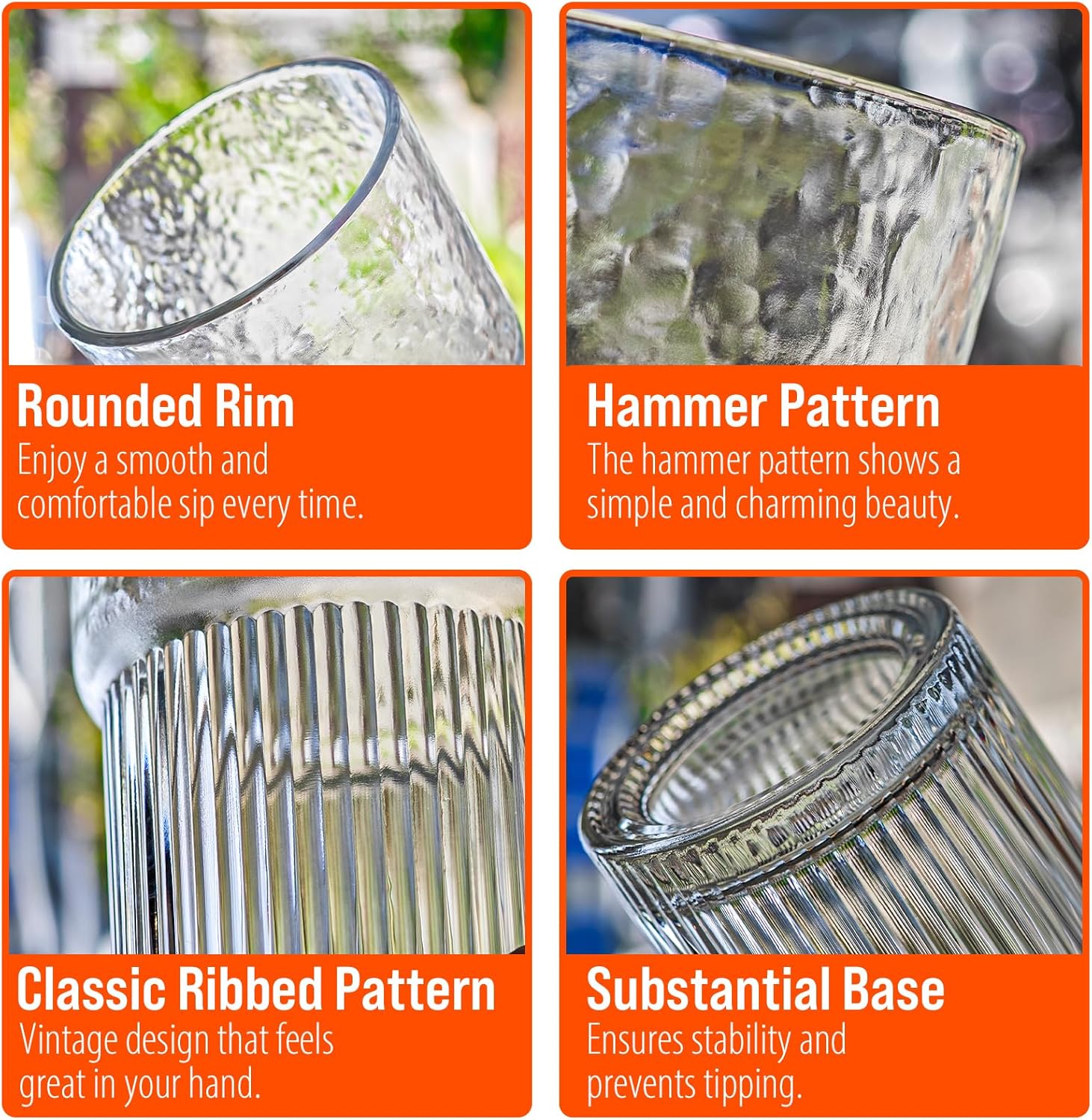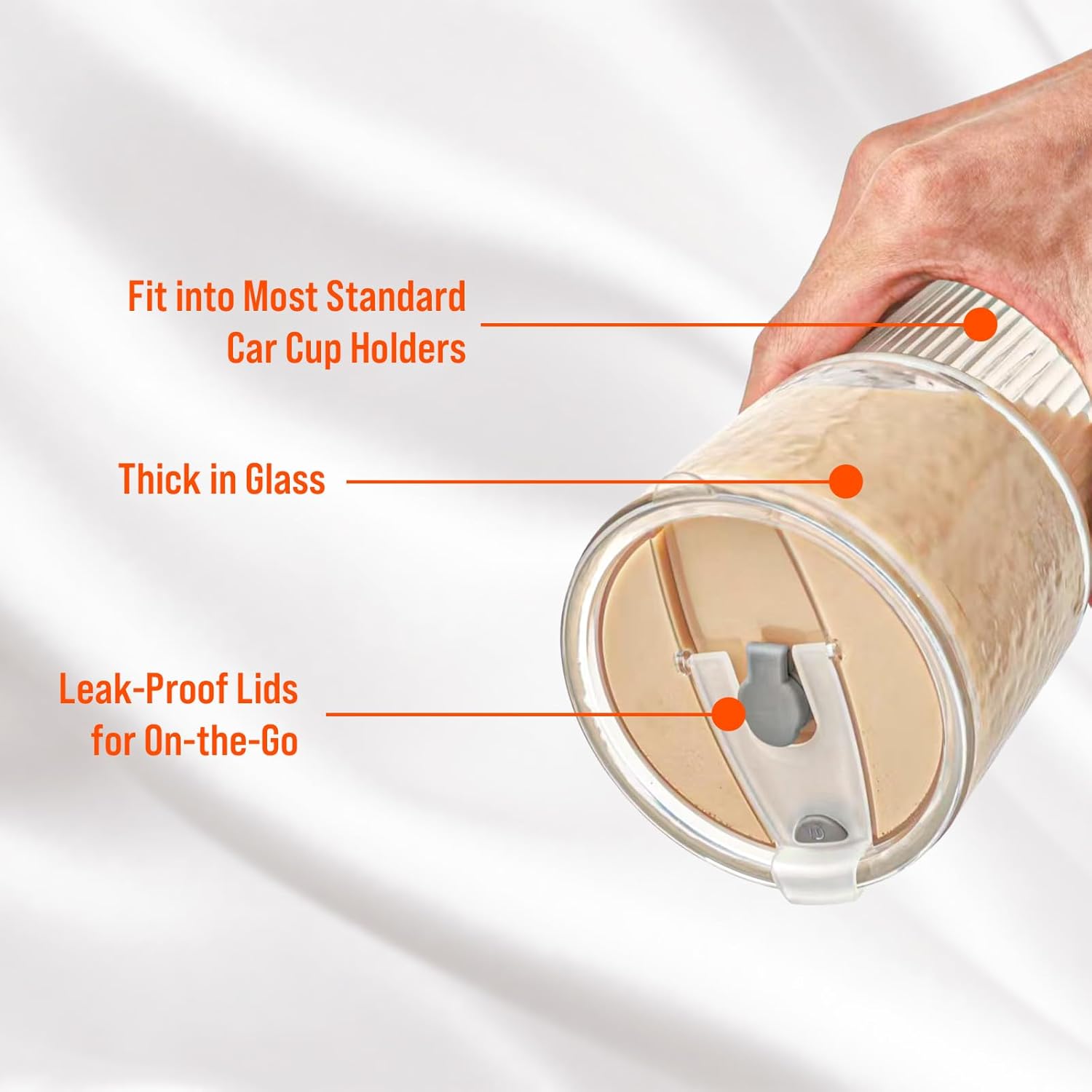- Complete Set:Comes with 2 ribbed Frosted 20oz glass tumblers, 2 plastic lids, 2 glass straws, and 1 straw brush, providing everything you need for a great drinking experience.