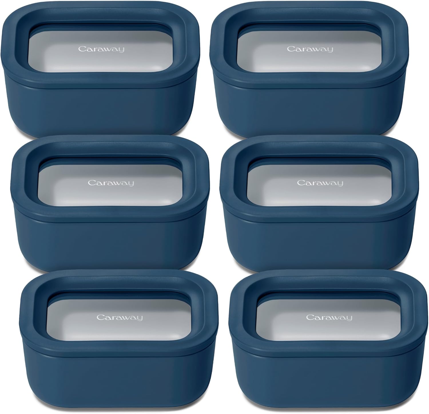 Caraway 6pc Glass Food Storage Set - 2.6 Cup Storage Containers For Food (6) - Non-Toxic Ceramic-Coated Glass - Air Release Technology - Compact & Stackable Design - Navy
