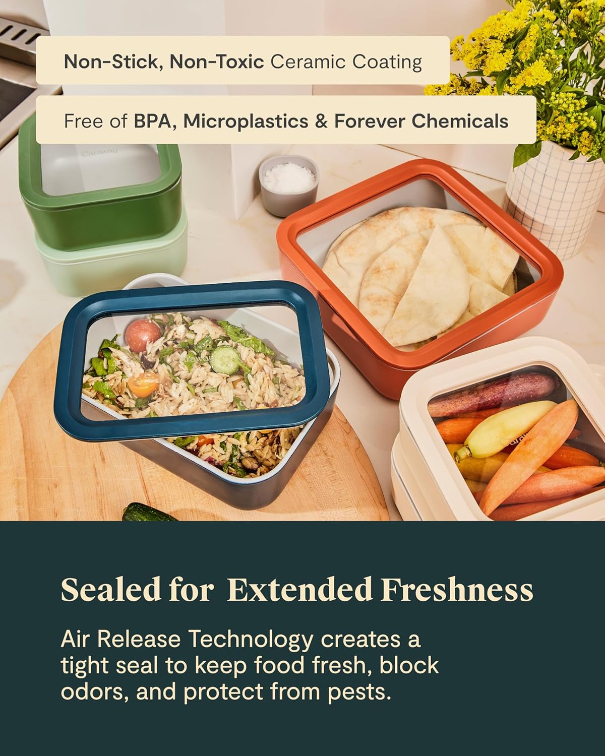 - DISHWASHER SAFE & EASY TO CLEAN: Featuring a smooth ceramic-coated interior and a removable gasket, these food containers with lids are simple to clean, making them perfect for everyday use.
