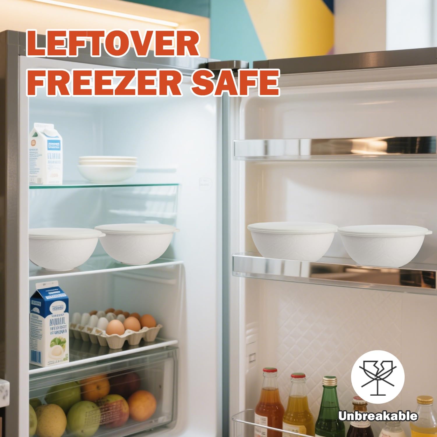 alternative plastic bowl set with lids,unbreakable wheat straw bowls 40oz suitable for indoors and outdoors,overnight foods container with cover. White