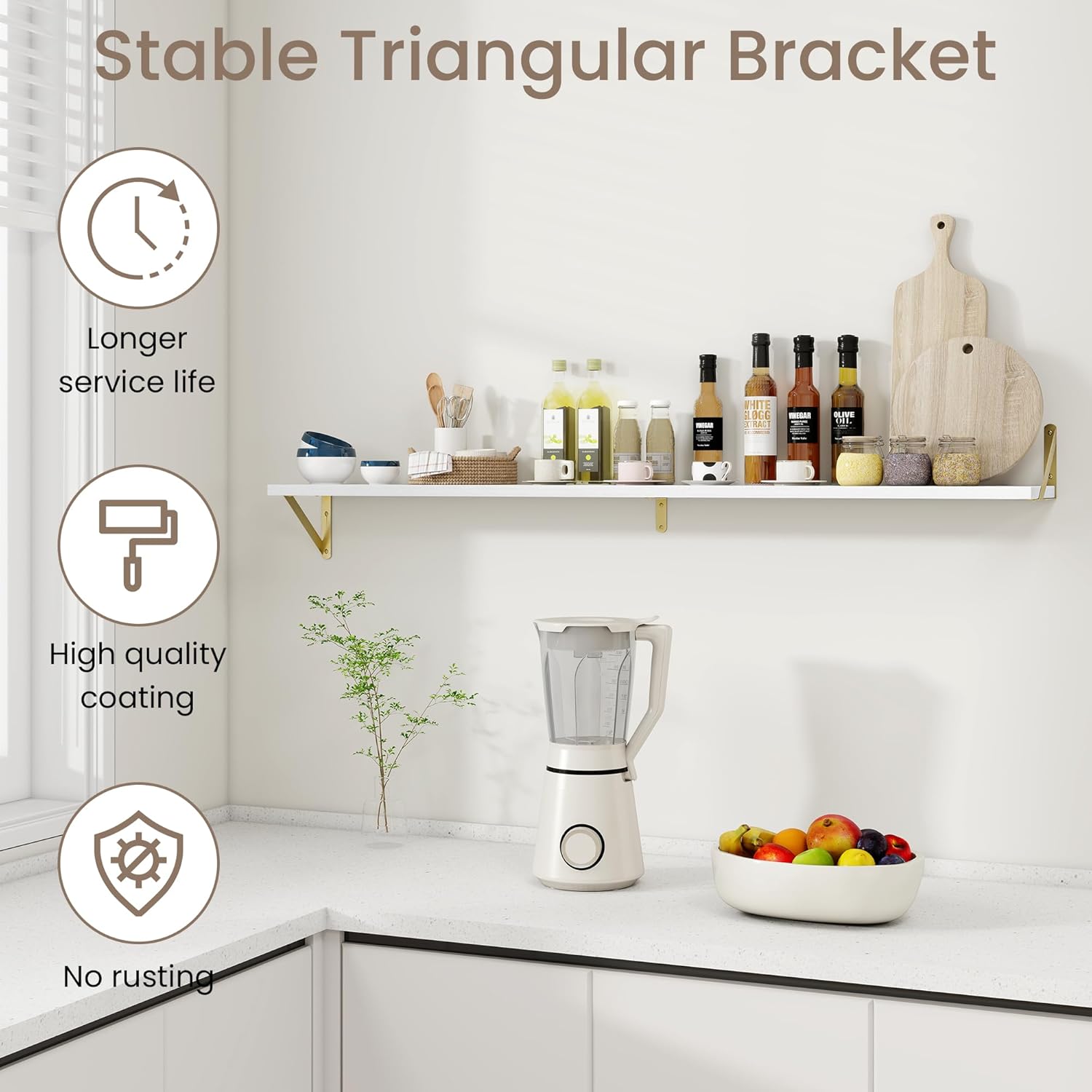 - Wide Application: These floating shelves are perfect for any room in your home. Use them in the living room to display artwork, in the kitchen for spices and utensils, in the bathroom for toiletries, or in the bedroom for books and accessories. Their versatility ensures they meet your storage and decor needs wherever you place them.