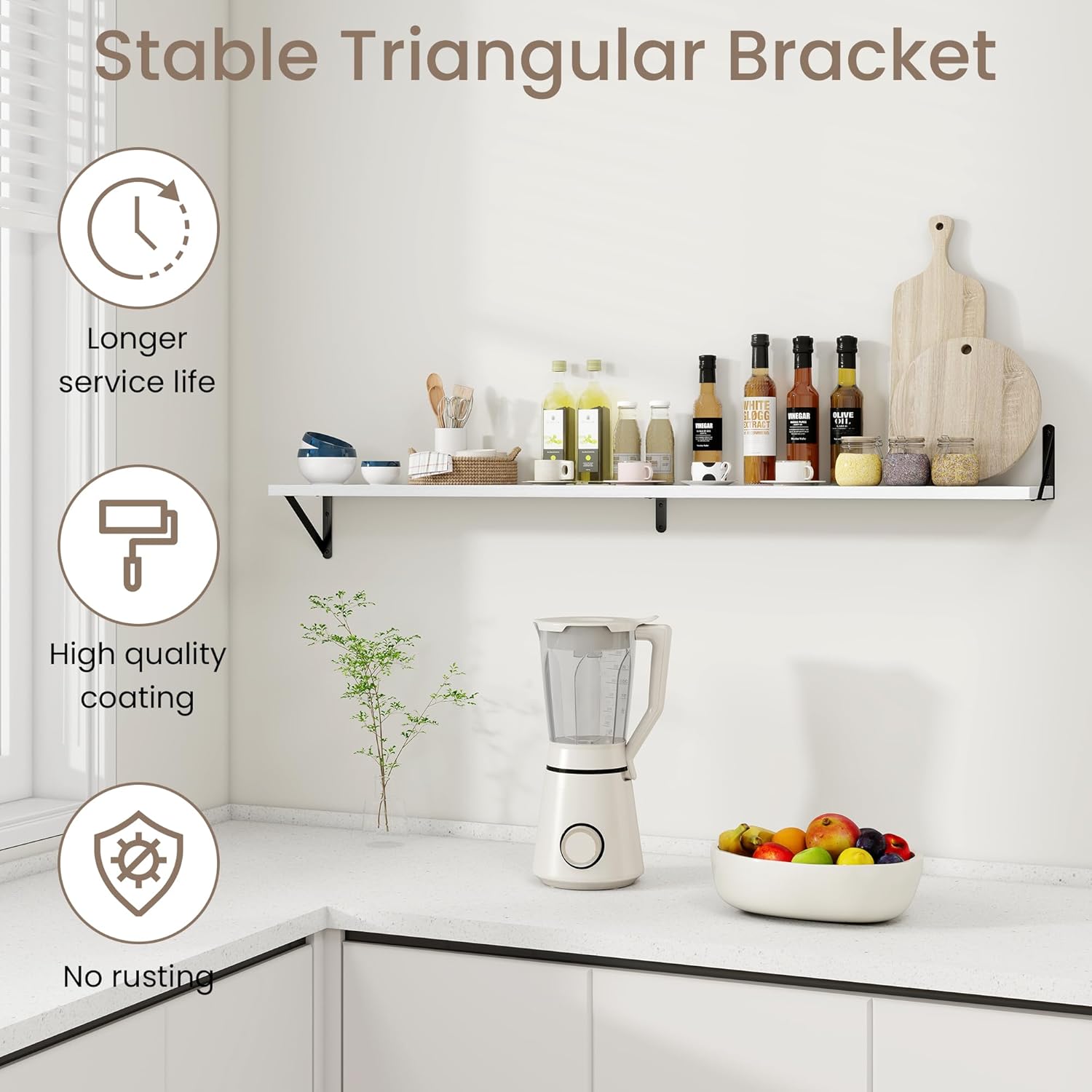 - Wide Application: These floating shelves are perfect for any room in your home. Use them in the living room to display artwork, in the kitchen for spices and utensils, in the bathroom for toiletries, or in the bedroom for books and accessories. Their versatility ensures they meet your storage and decor needs wherever you place them.
