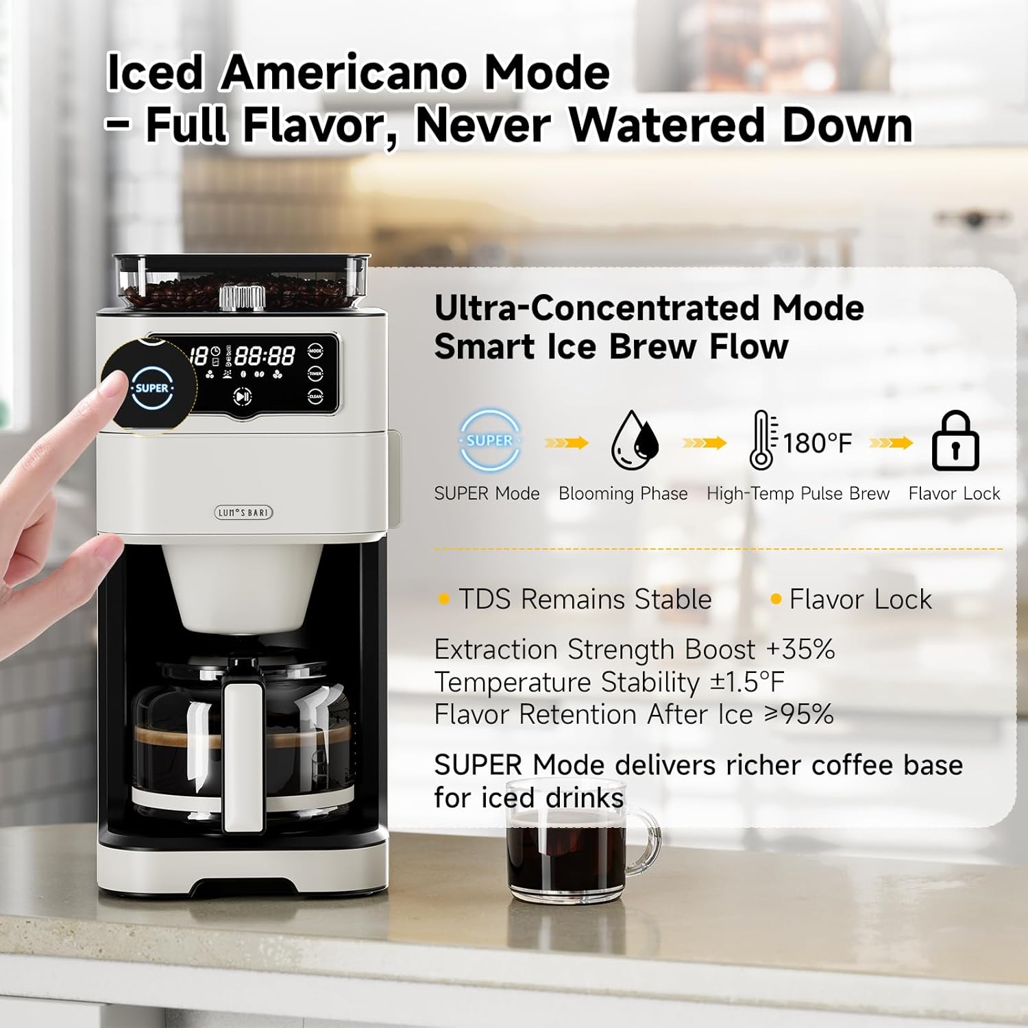 - Iced Americano Mode for Rich Flavor Specialized iced coffee mode maintains a higher coffee concentration, ensuring a rich, sweet flavor even after adding ice — perfect for hot summer days.