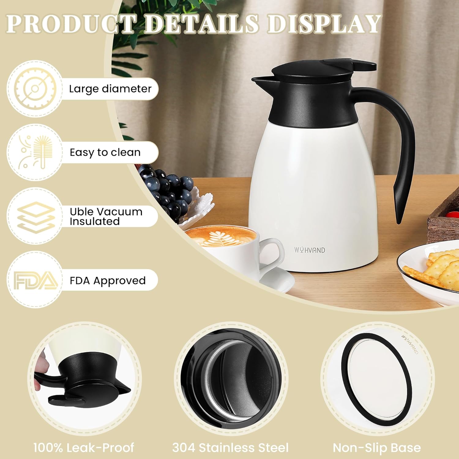 34 Oz Thermal Coffee Carafe, Stainless Steel Insulated Vacuum coffee crafts to keep coffee hot, 1 Liter Tea Water Coffee and Beverage Dispenser (Cream)