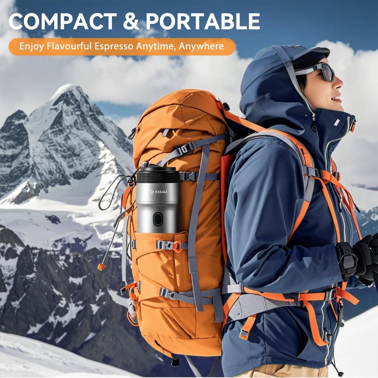 - ăPortable DesignăWith a compact design, the electric espresso maker weighs 2.4 lbs and is only the size of a water bottle. It is portable and perfect for camping, travelling and hiking. This coffee maker is compatible with 12V car charging, so you can charge it wherever you go