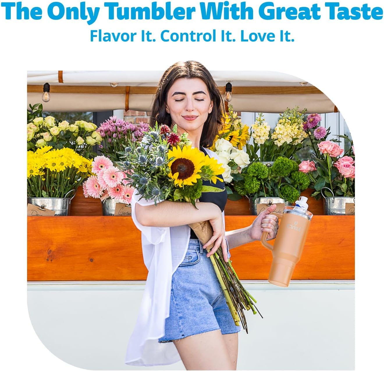 Cirkul 40oz Stainless Steel Insulated Tumbler Bundle in Apricot –Includes Flavor Cartridge Drink Mix Variety Pack, Zero Calories, No Sugar