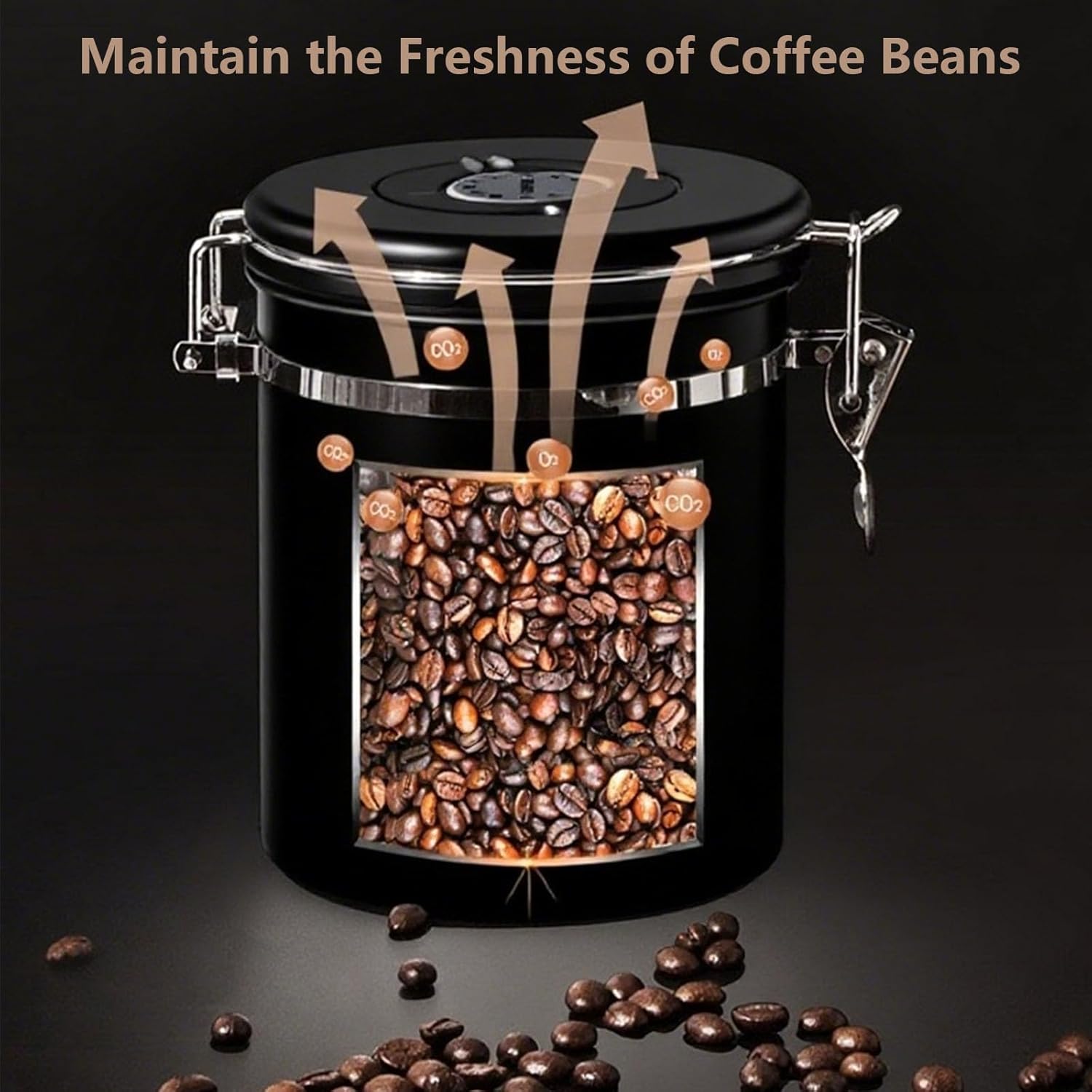 - 🛡️【Food Grade Stainless Steel】The internal body of the coffee canister is made of food grade, sturdy, and high-quality 304 stainless steel, and the container lid is made of high-quality plastic that does not contain bisphenol A. Its function is to store, maintain and monitor the freshness of coffee beans, ensuring the taste and flavor of coffee.