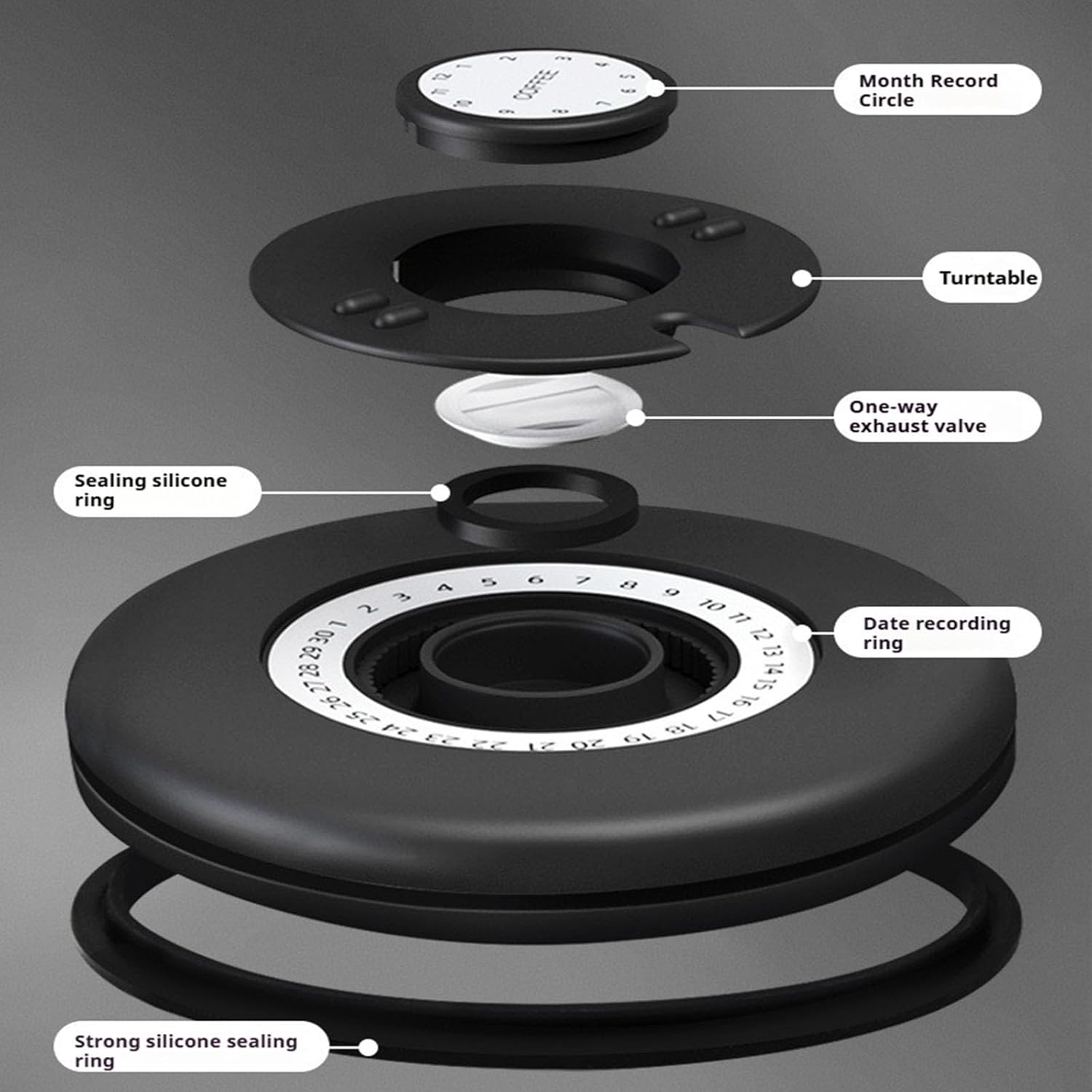 - 📅 【Date Tracking and Freshness Management】Our airtight vacuum sealed coffee cans maintain the freshness of coffee powder and beans for a long time, isolating moisture and odors. The lid is equipped with a date tracker (time adjustment dial), which easily sets the storage date or expiration date to help you monitor the freshness of coffee beans and always enjoy fresh and delicious coffee.
