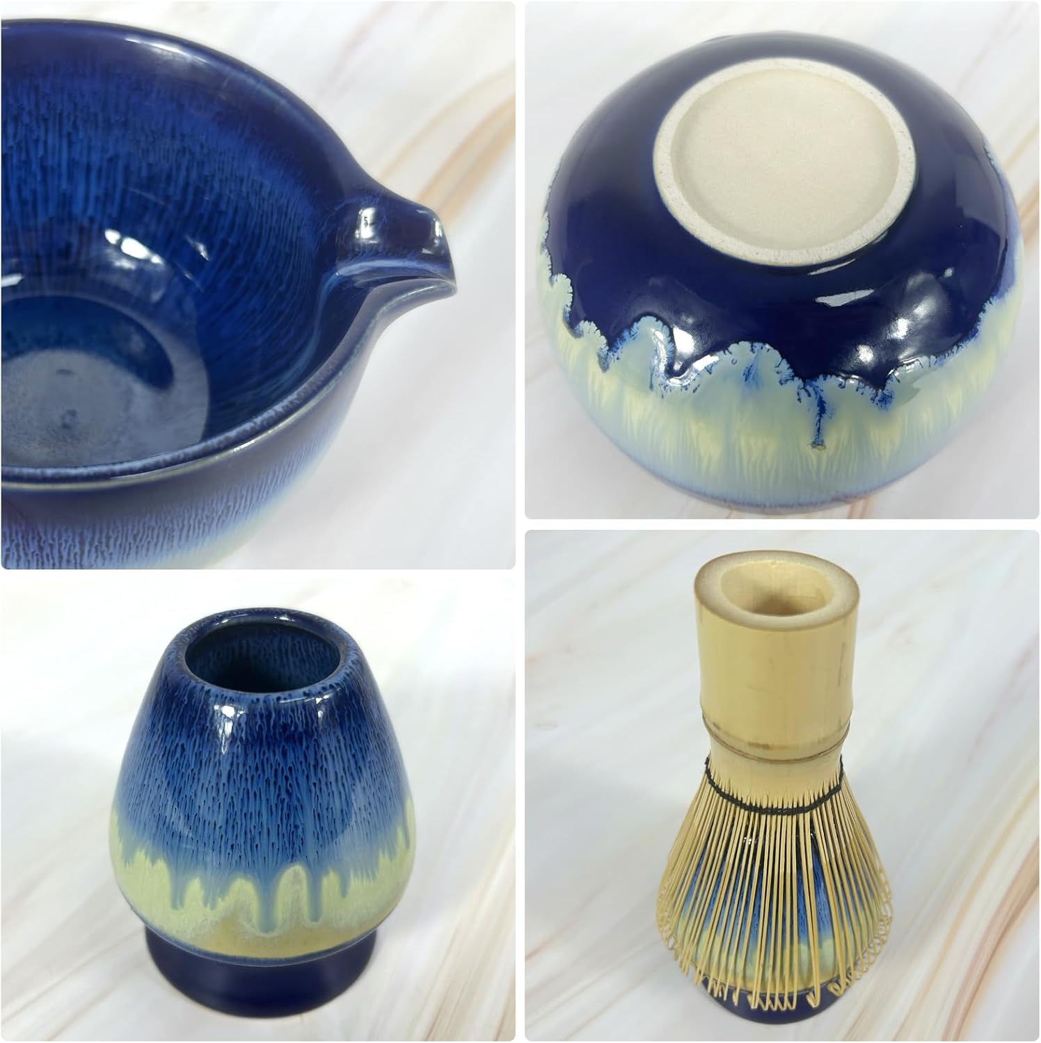 Matcha Whisk Set,6Pcs Matcha Kit Includes Matcha Whisk and Holder,Matcha Bowl with Spout,Matcha Sifter and 2Pcs Matcha Spoon,Suitable as a gift for those who like matcha (Gradient Blue)