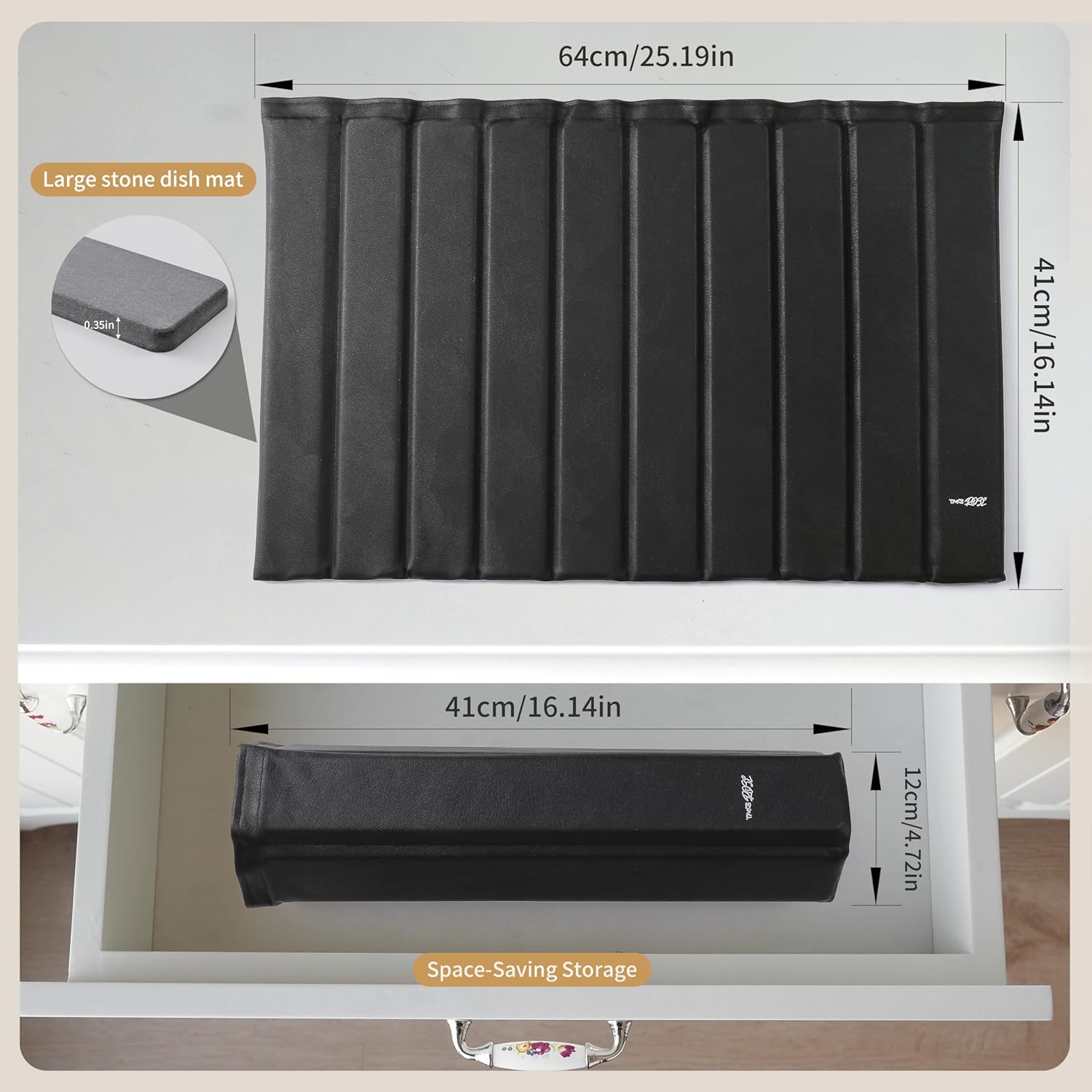 - 【FOLDABLE STONE DISH DRYING MAT】This 24"×16" stone drying mat fits dishes, pans, and more. Easily folded or rolled for compact storage. Remove the diatomaceous earth strips or fold to fit any kitchen space.