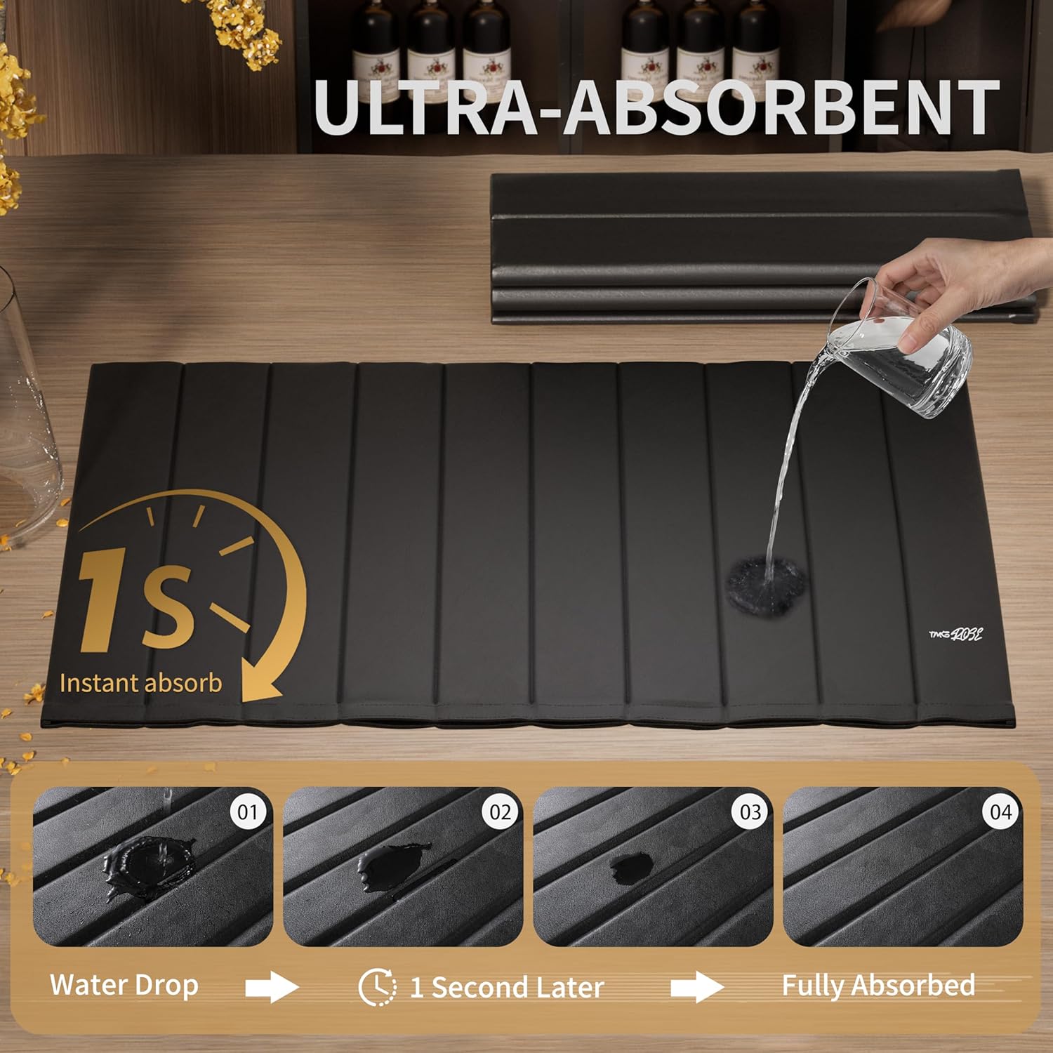 Stone Drying Mat for Kitchen Counter-Super Absorbent PU Dish Drying Mat, Quick Dry Stone Mat Kitchen for Dishes, Bottles & Cups, Large Foldable Stone Dish Drying Mat, Non-Slip Kitchen Mat
