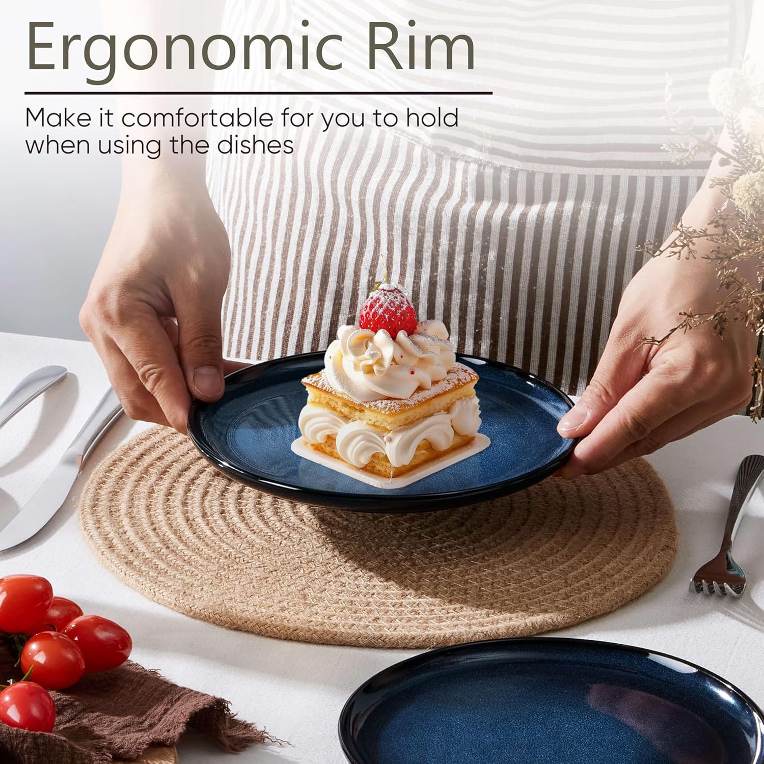 Herogo 6-Piece Stoneware Small Dinner Plates Set, 7.9" Ceramic Round Dessert Plate Set, Double Reactive Glaze Large Dinnerware Plates for Kitchen, Microwave, Oven and Dishwasher Safe, Starry Blue