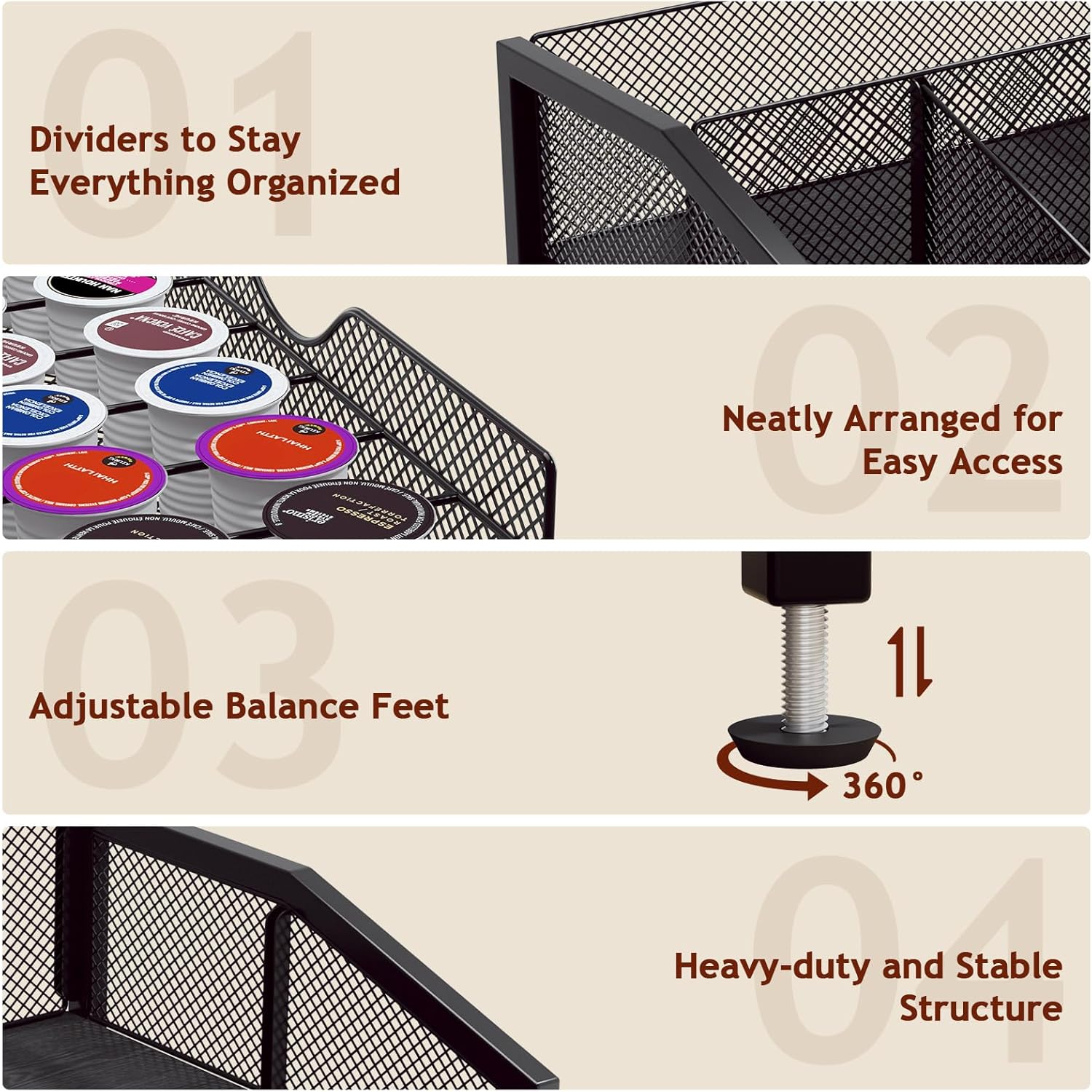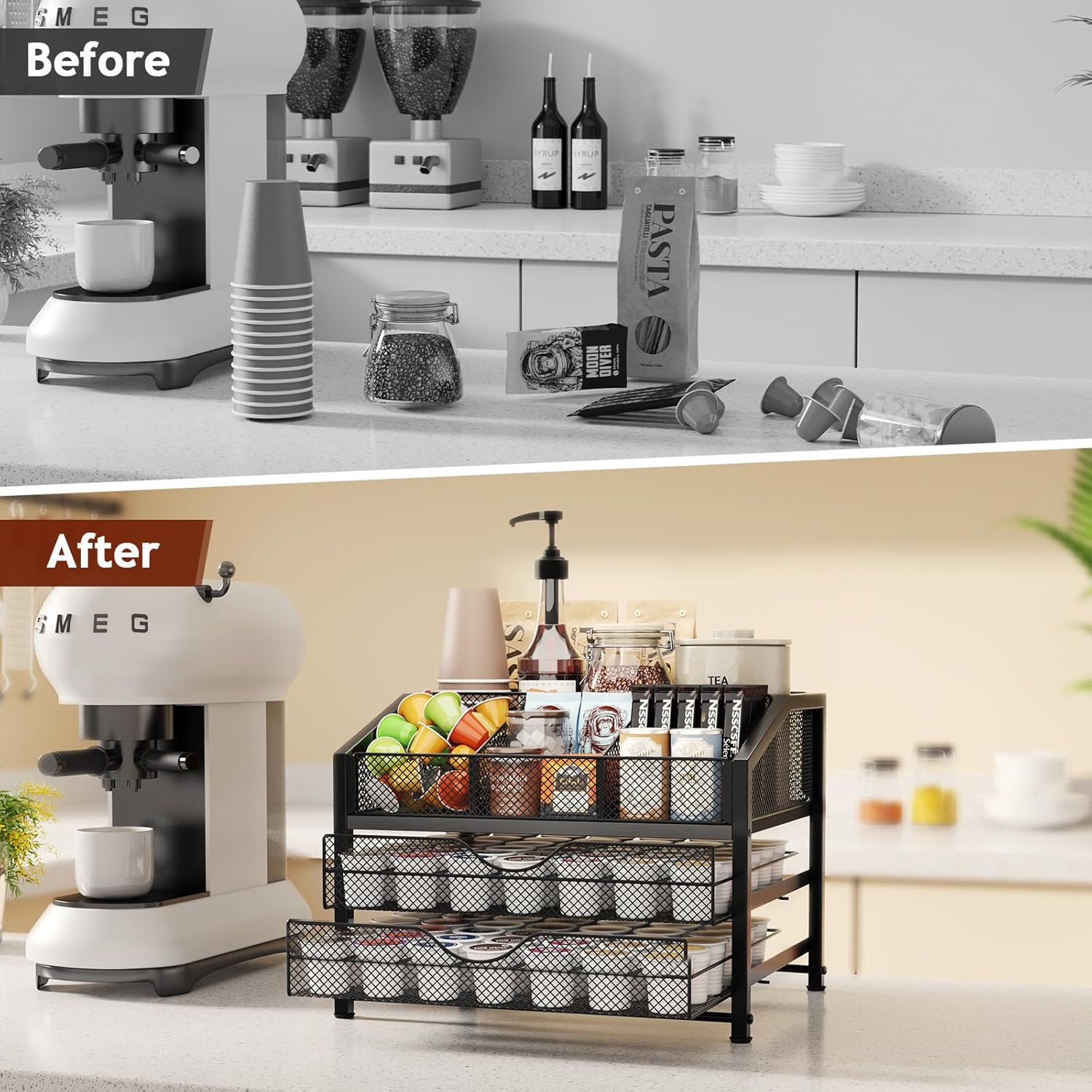 - [A Thoughtful Design for Effortless Mornings] Ever struggled to grab the last coffee pod or tea bag from the bottom of a cluttered drawer? This coffee organizer station making it easy to pick up every last piece—no more digging, no more hassle, just quick and easy access to your favorite brew.