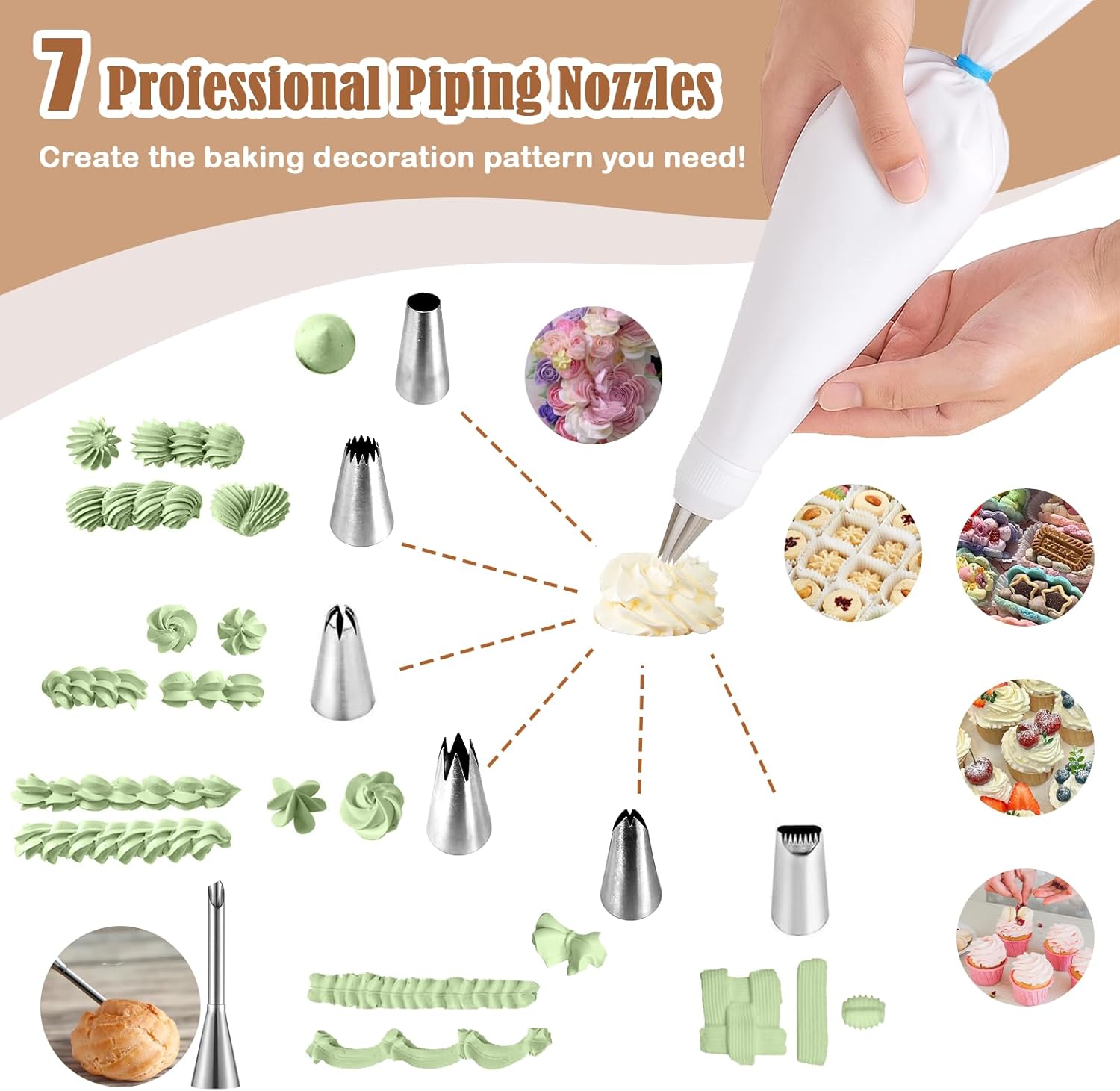- 【Durable Materials】Made from thick reusable cotton piping bags that resist slipping during use, giving you steady control while frosting. At the same time, this piping bag is thicker and less likely to tear than ordinary piping bags. The stainless steel tips are healthier and longer-lasting than plastic alternatives.