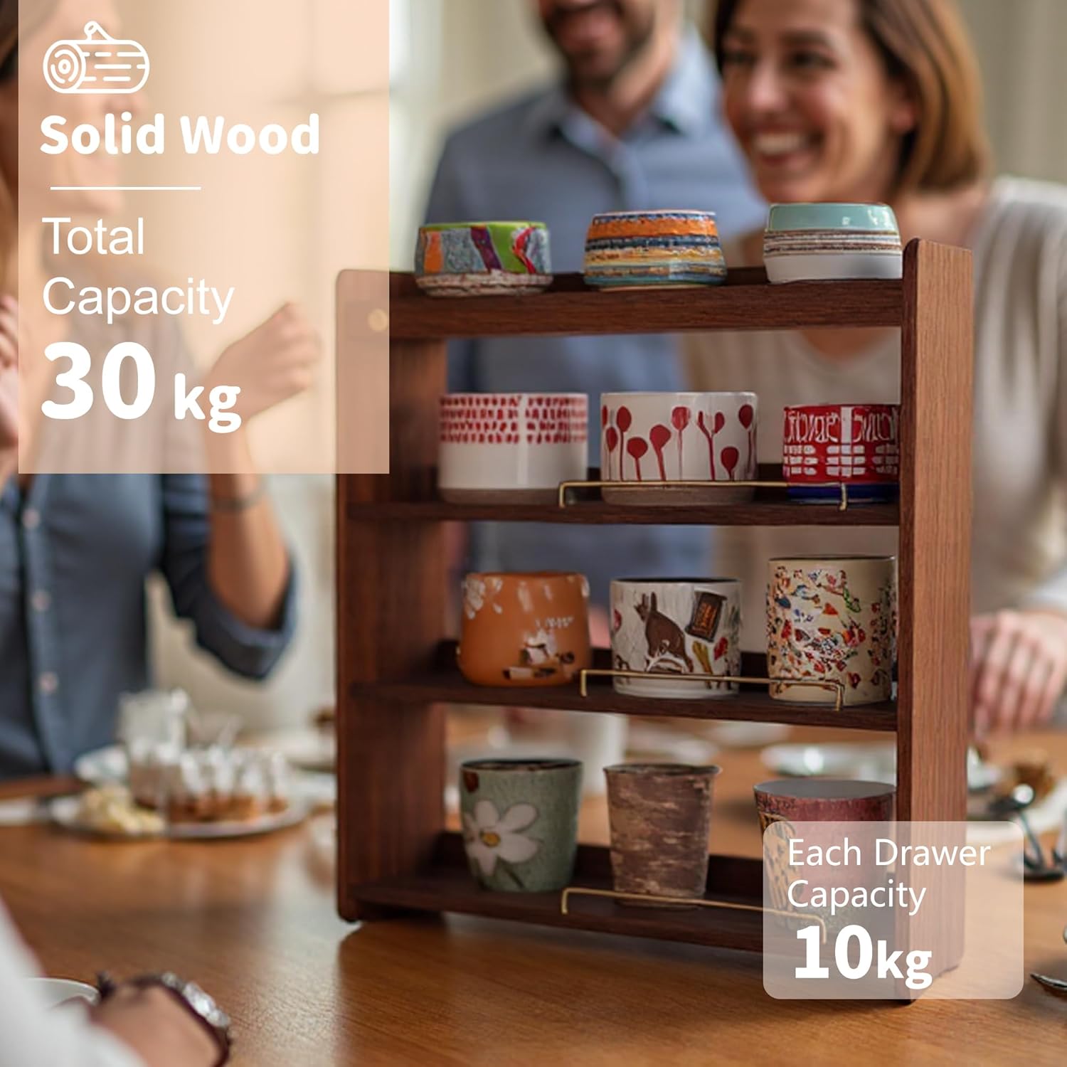 - 4 Tier Solid Wooden Cup Holder: This Multi-tier Wooden Cup Holder Size is: 20*21*6inch. It is the perfect storage tool for your kitchen, it can organize and store your cups efficiently.