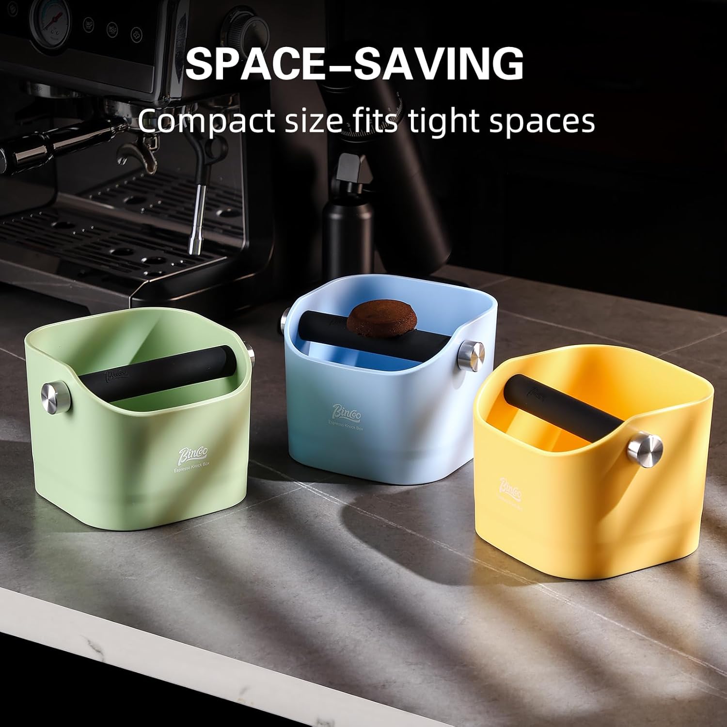 Espresso Knock Box - Bincoo Blue Espresso Machine Knock Box/Espresso Grounds Knock Box, Barista Style Coffee Knock Box for Grounds with Removable Shock-Absorbent Knock Bar and Anti-Slip Base. (Blue)