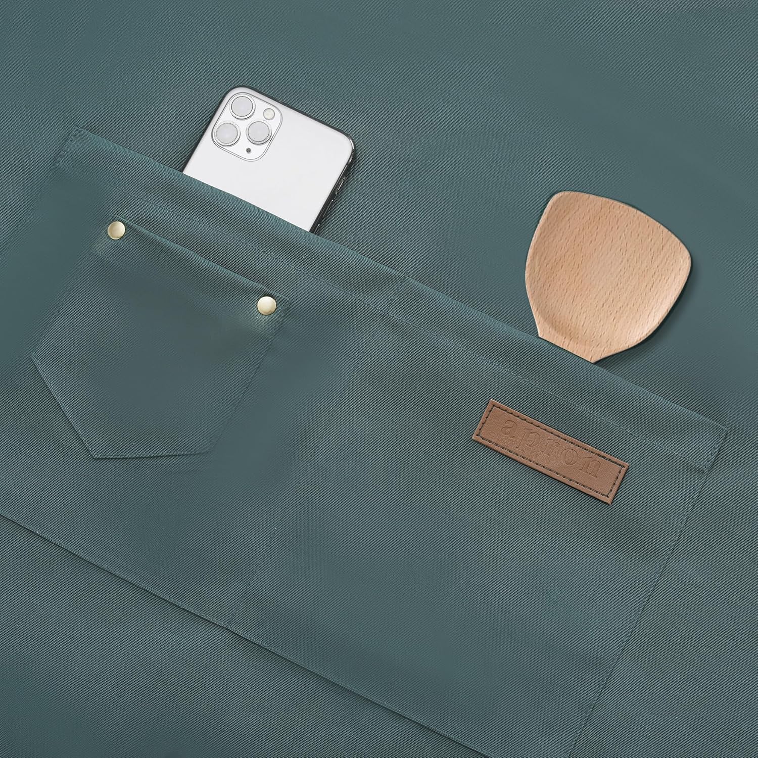 • 【Apron With Large Pockets 】Our kitchen apron has 2 large pockets in the middle of apron, and spacious divided pocket can give you enough place to hold into meat thermometer, grill slips, phones, recipe cards, seasoning packets, recipe cards, pen and phone etc.