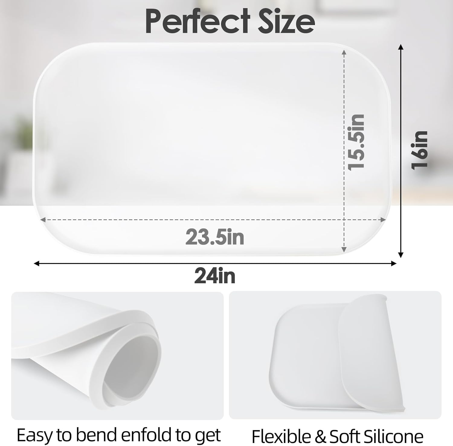 Silicone Coffee Maker Mat with Lip, 24'' x 16'' Heavy Duty Coffee Maker Mat for Countertops, Coffee Tray Fit Under Coffee Machine Appliance Automatic Machines Espresso Accessory, Translucent