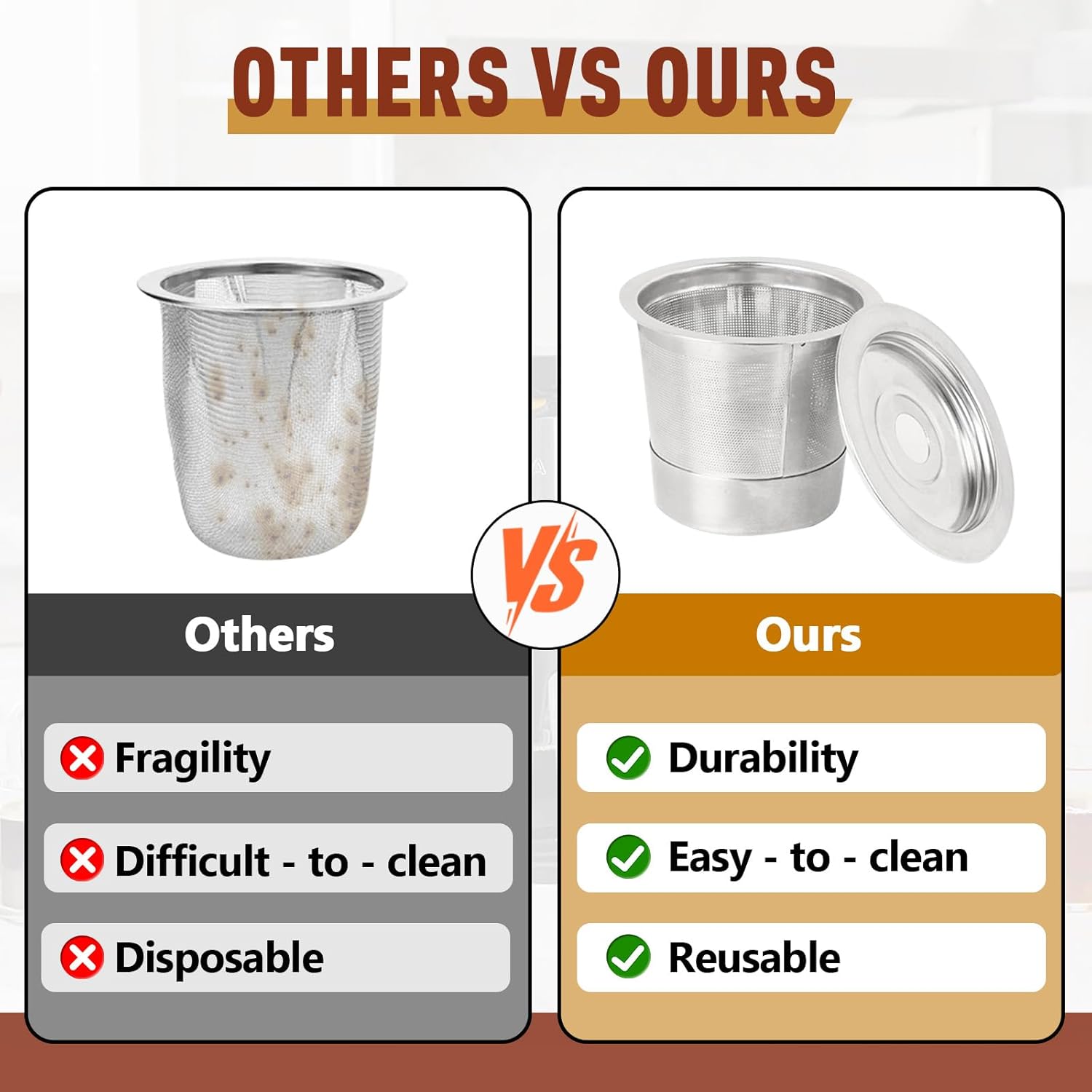 - Convenient 3-Pack Set: Our 3 pack reusable stainless steel K Cup & coffee pods filters ideal for any occasion, whether it's a morning pick-me-up, an afternoon refill, or sharing coffee with loved ones. The 3-pack allows for seamless rotation, making it perfect for high-frequency use
