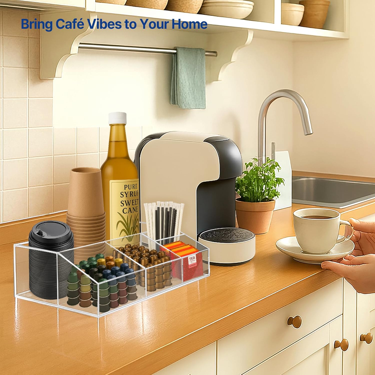 - Organize your morning routine with ease using this stylish Acrylic Coffee Bar Station Organizer, designed to keep every item in place—from coffee pods to stirrers—in one tidy space-saving unit. A must-have coffee station organizer for your home or office.